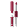 Apply base coat to bare lips. Wait 90 seconds to dry. Lock in pigment with glossy top coat. Result: High shine color with 16h, zero color transfer wear.