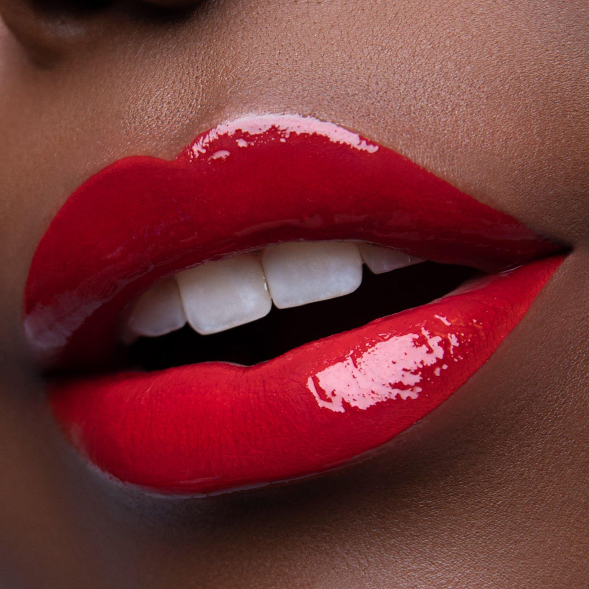Apply base coat to bare lips. Wait 90 seconds to dry. Lock in pigment with glossy top coat. Result: High shine color with 16h, zero color transfer wear.