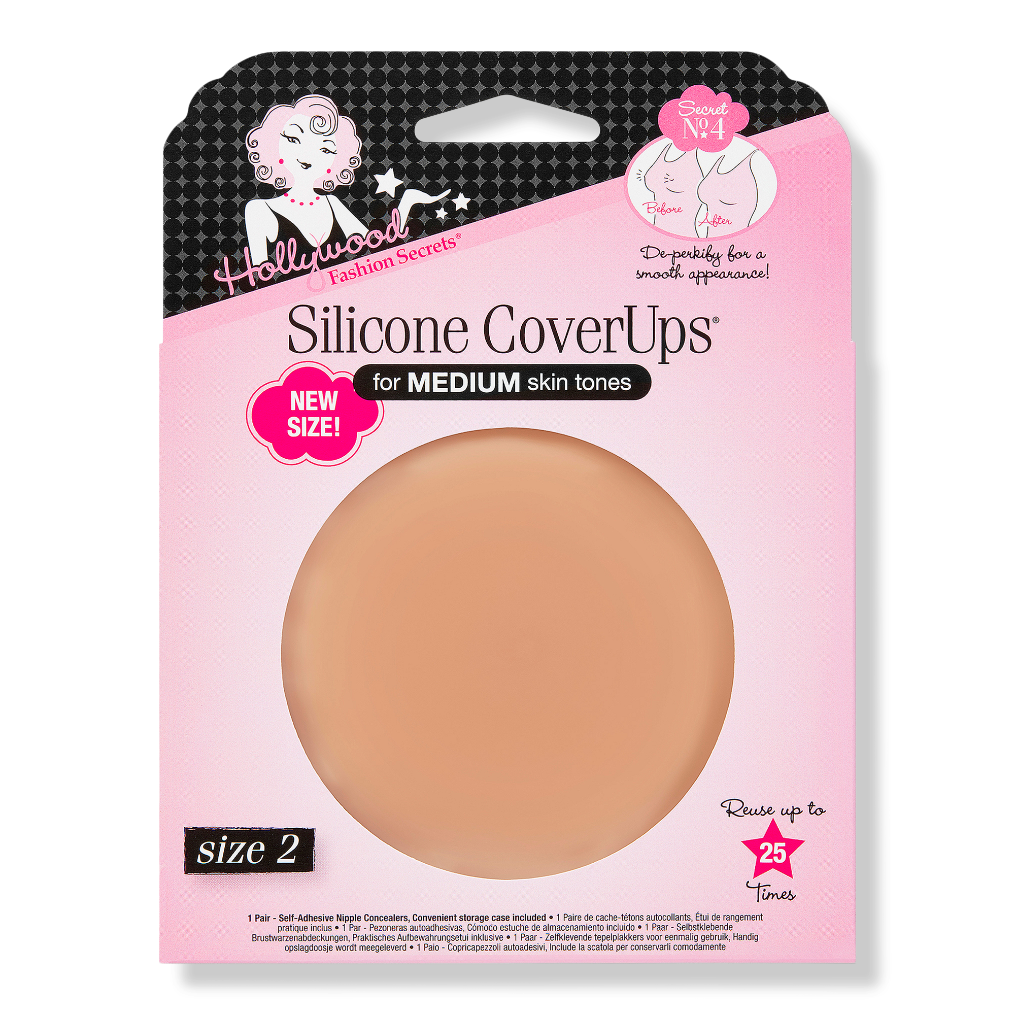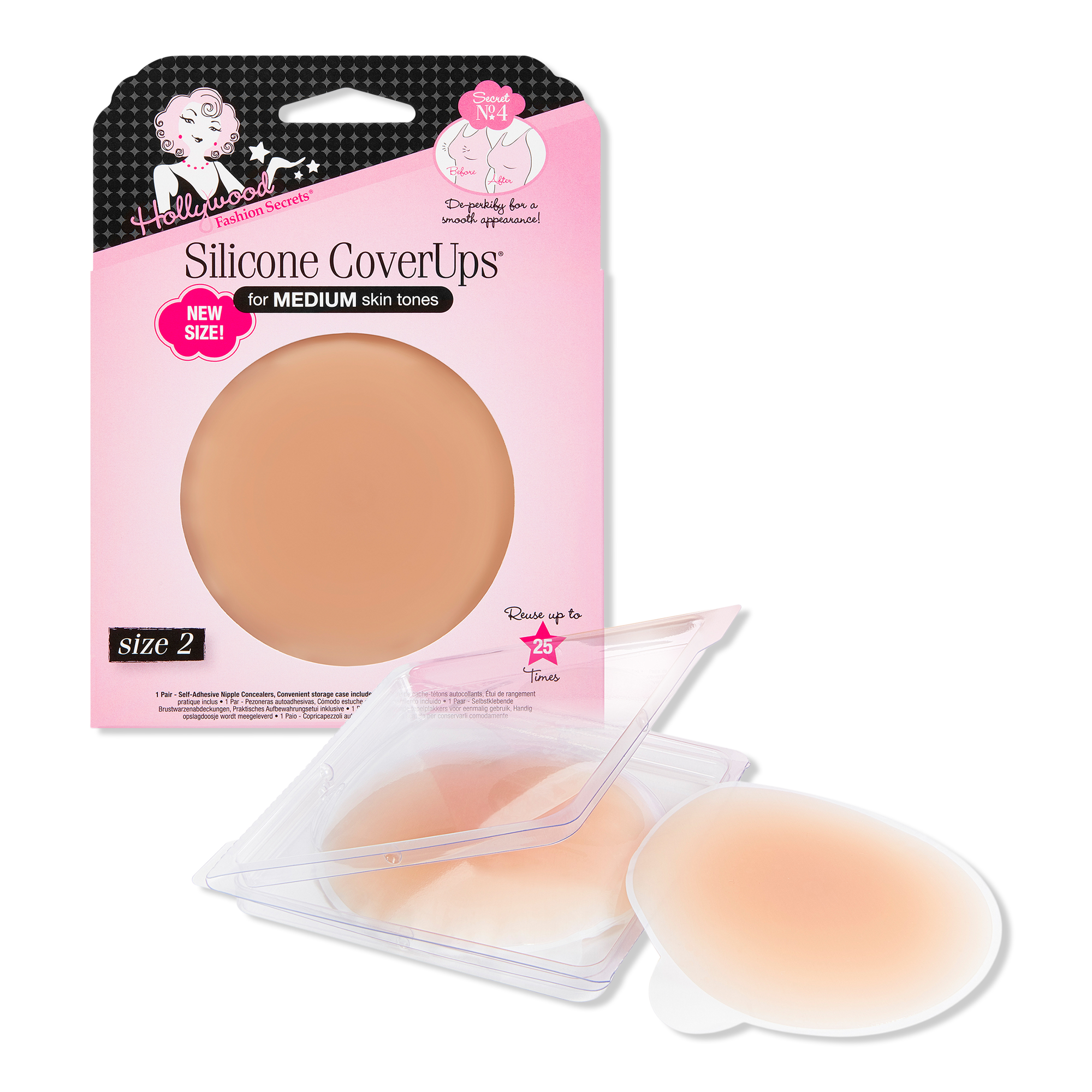 Conceal what you don't want to reveal! Hollywood Fashion Secrets Silicone CoverUps Size 2 nipple concealers give you an ultra-smooth, no-show appearance.