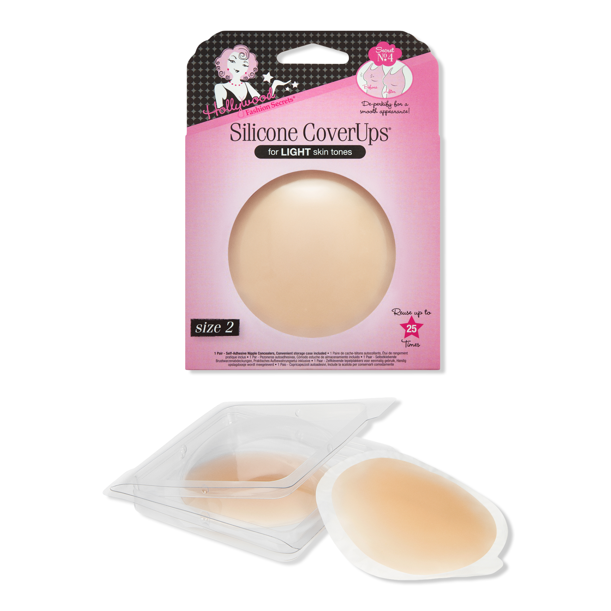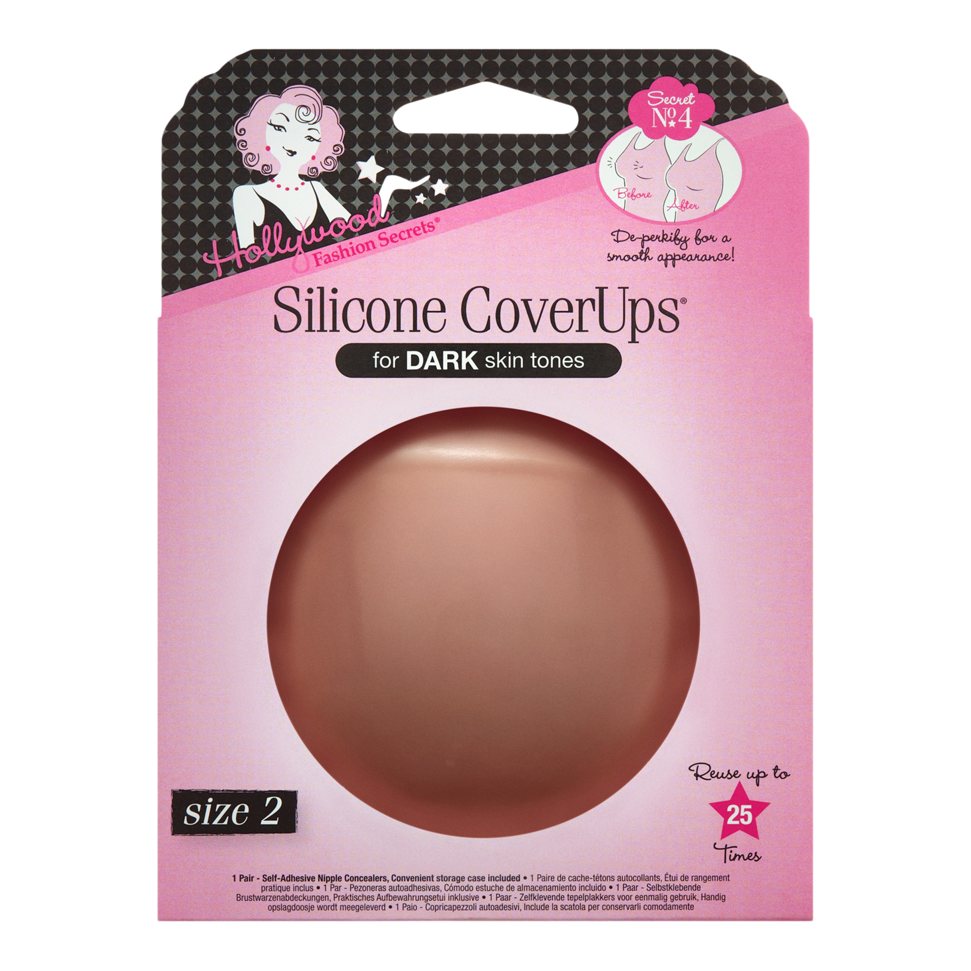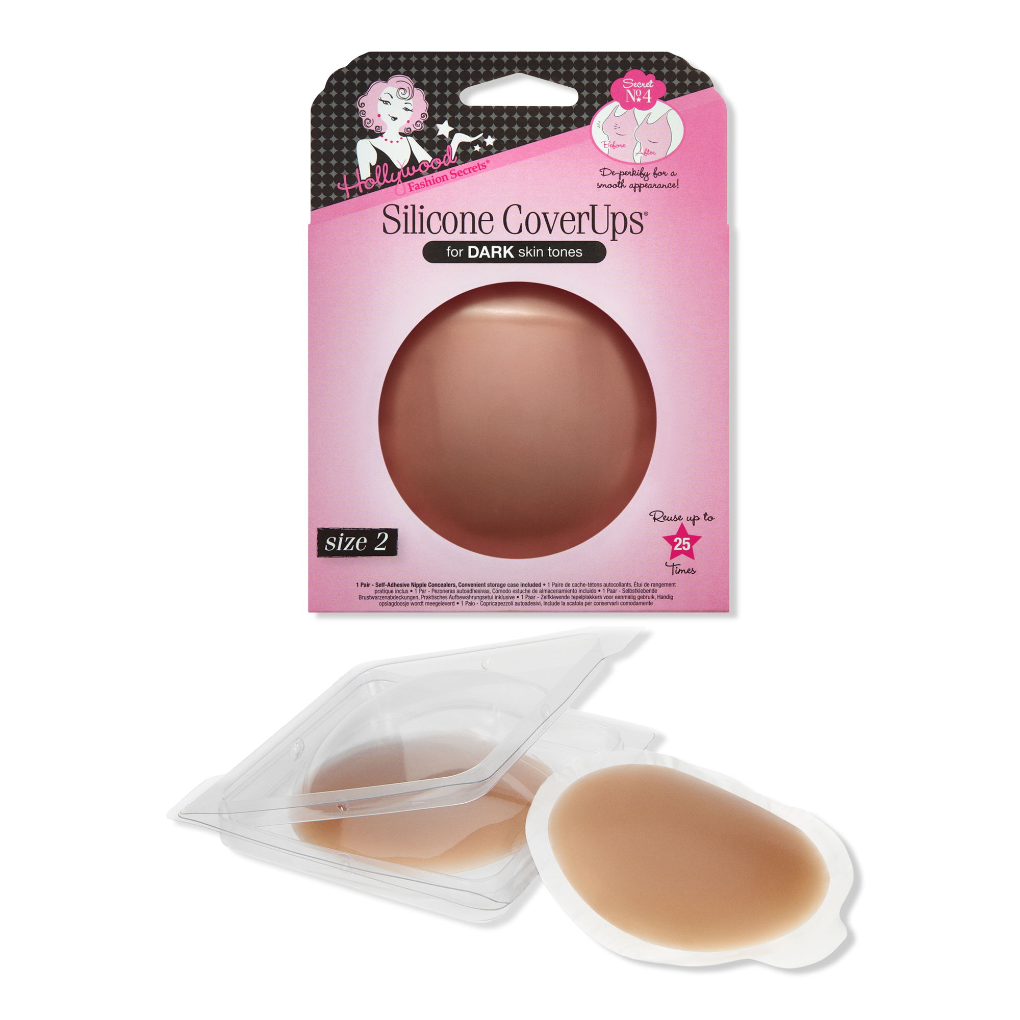 Conceal what you don't want to reveal! Hollywood Fashion Secrets Silicone CoverUps Size 2 nipple concealers give you an ultra-smooth, no-show appearance.