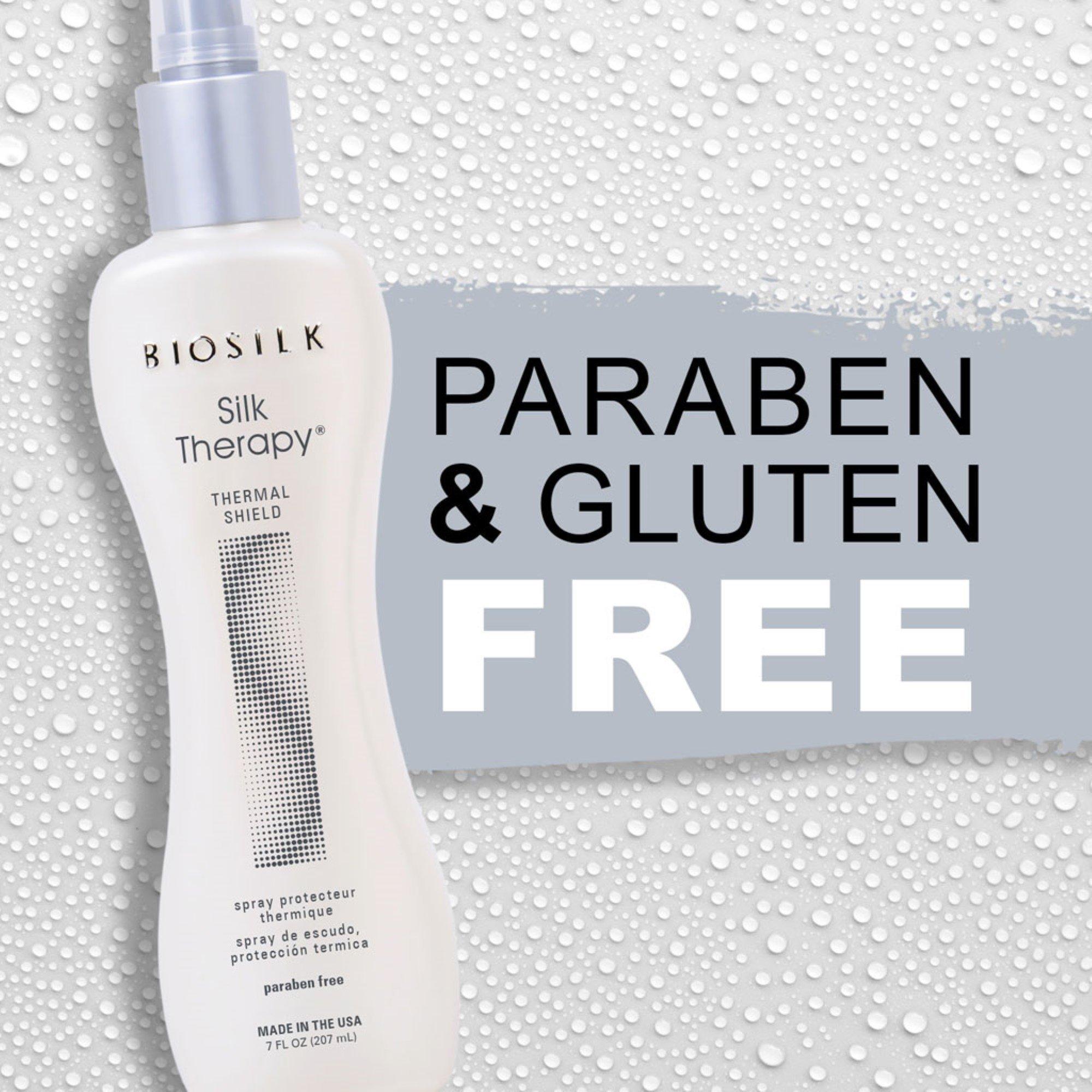 BioSilk Silk Therapy Thermal Shield Protection Spray offers complete heat protection. The advanced formula utilizes silk and other protecting ingredients to help shield hair from thermal damage while giving long-lasting styling results with ultimate shine.