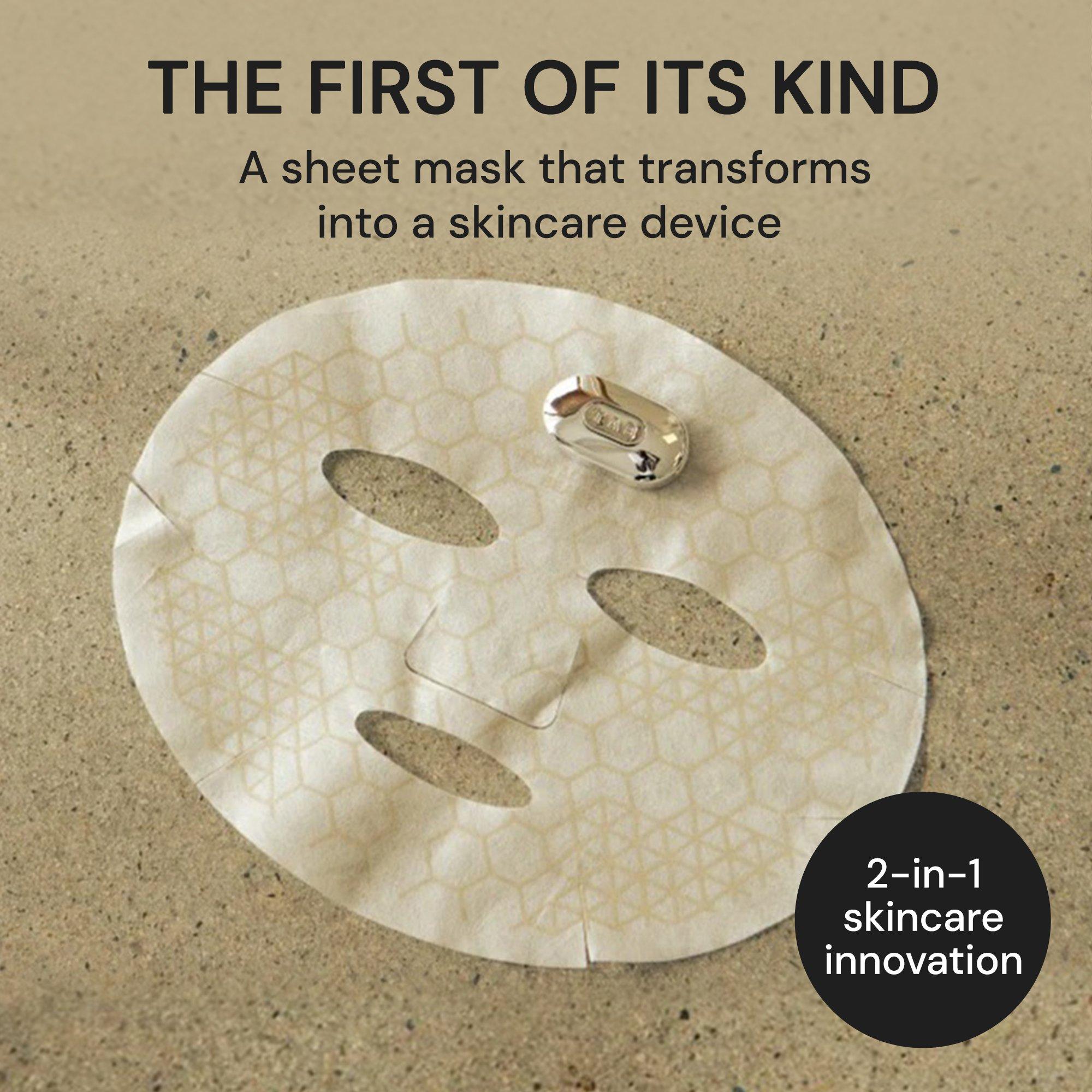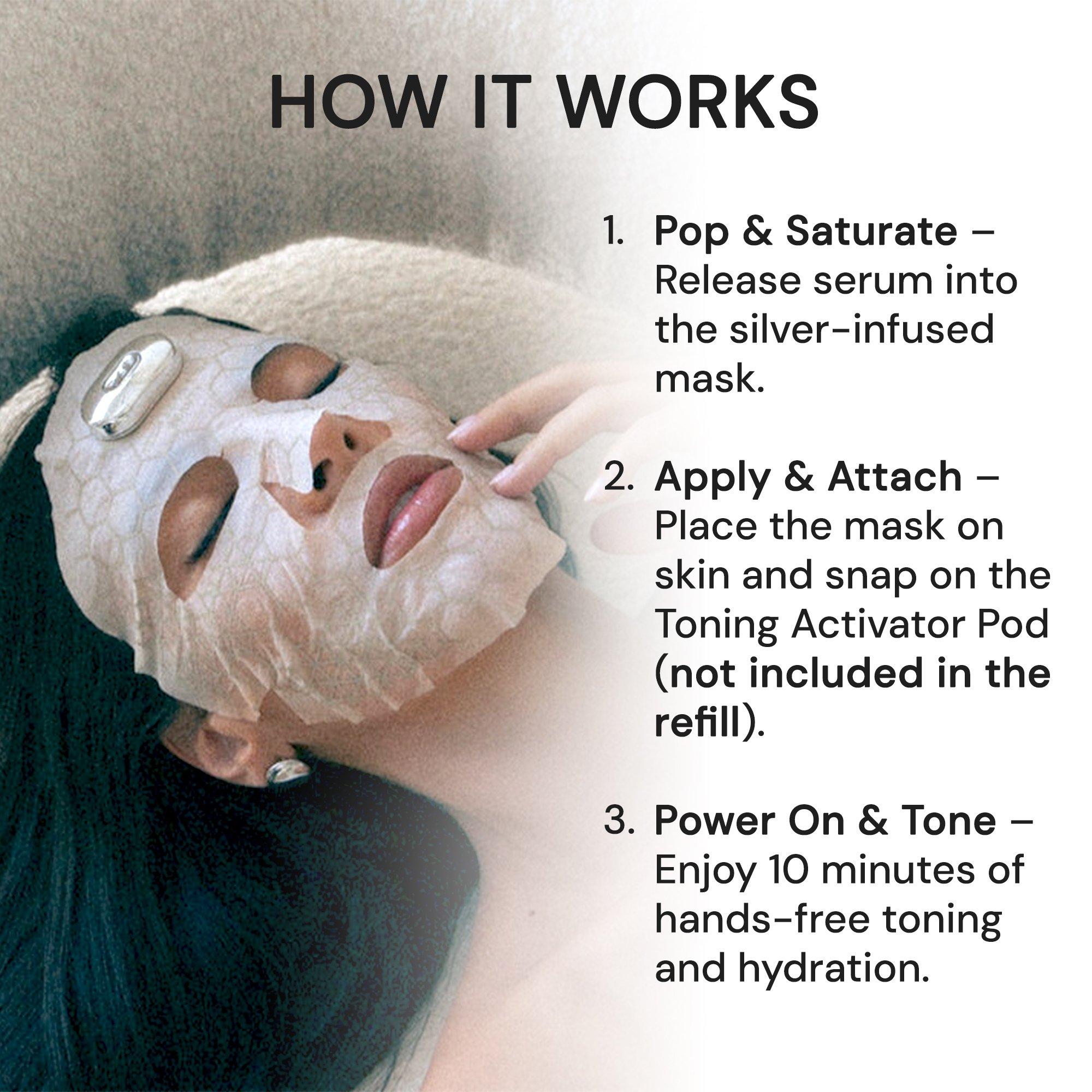 Experience next level masking with SilverFusion Sheet Mask + Toning Activator Pod, a first of its kind sheet mask and device in one. This tech activated system pairs a silver infused sheet mask with a rechargeable device to deliver gentle nano-currents that help lift, tone and hydrate skin.