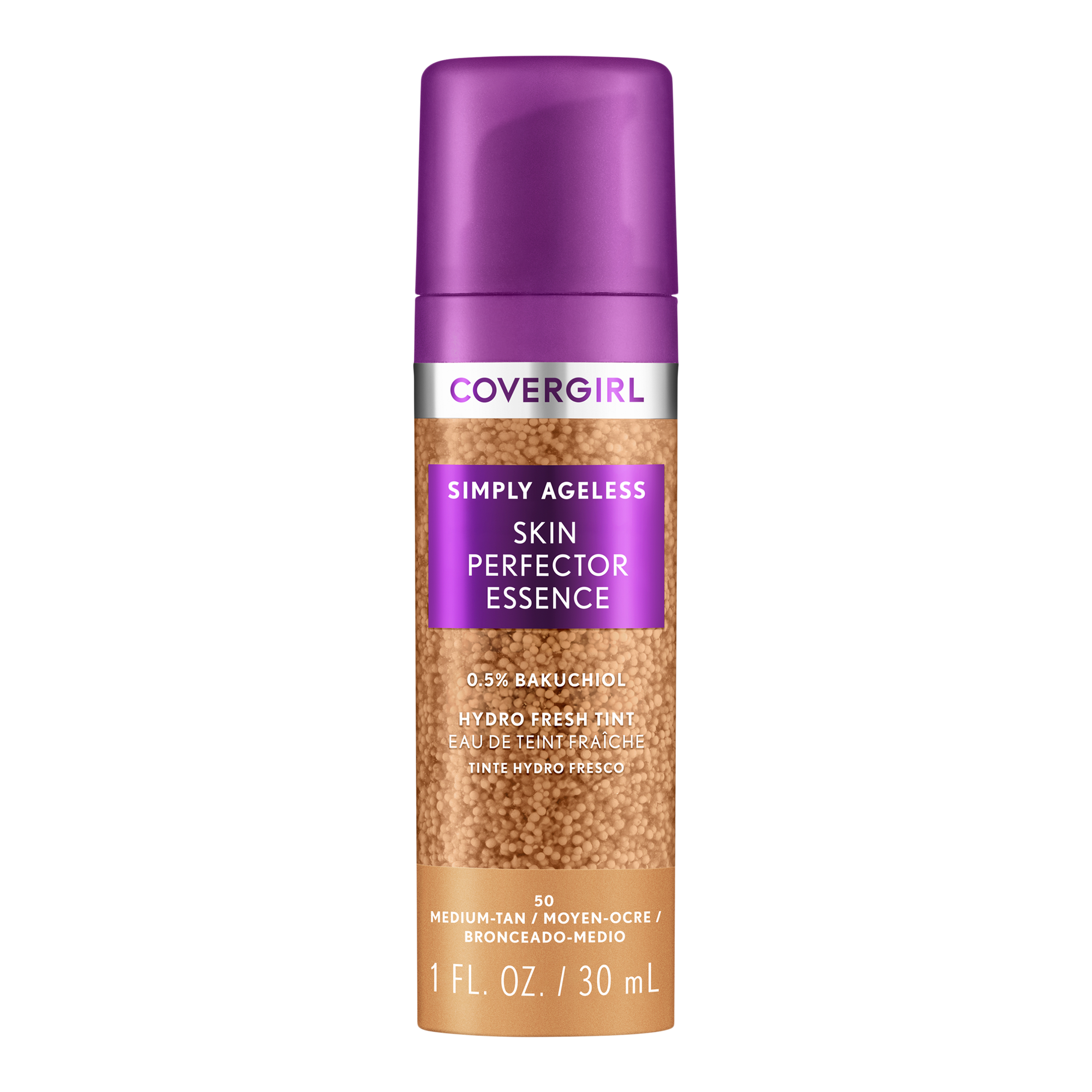 CoverGirl Simply Ageless Skin Perfector Essence, a skincare + makeup hybrid with microdroplet technology, gives your complexion a radiant bare-skin filter effect. A liquid foundation with pigmented capsules burst and blend easily to distribute a sheer, even tint that makes skin look plump.