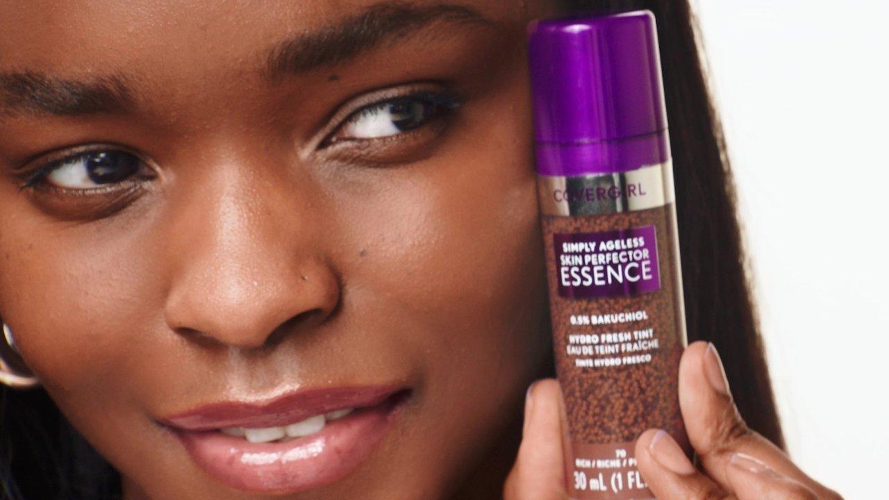 CoverGirl Simply Ageless Skin Perfector Essence, a skincare + makeup hybrid with microdroplet technology, gives your complexion a radiant bare-skin filter effect. A liquid foundation with pigmented capsules burst and blend easily to distribute a sheer, even tint that makes skin look plump.