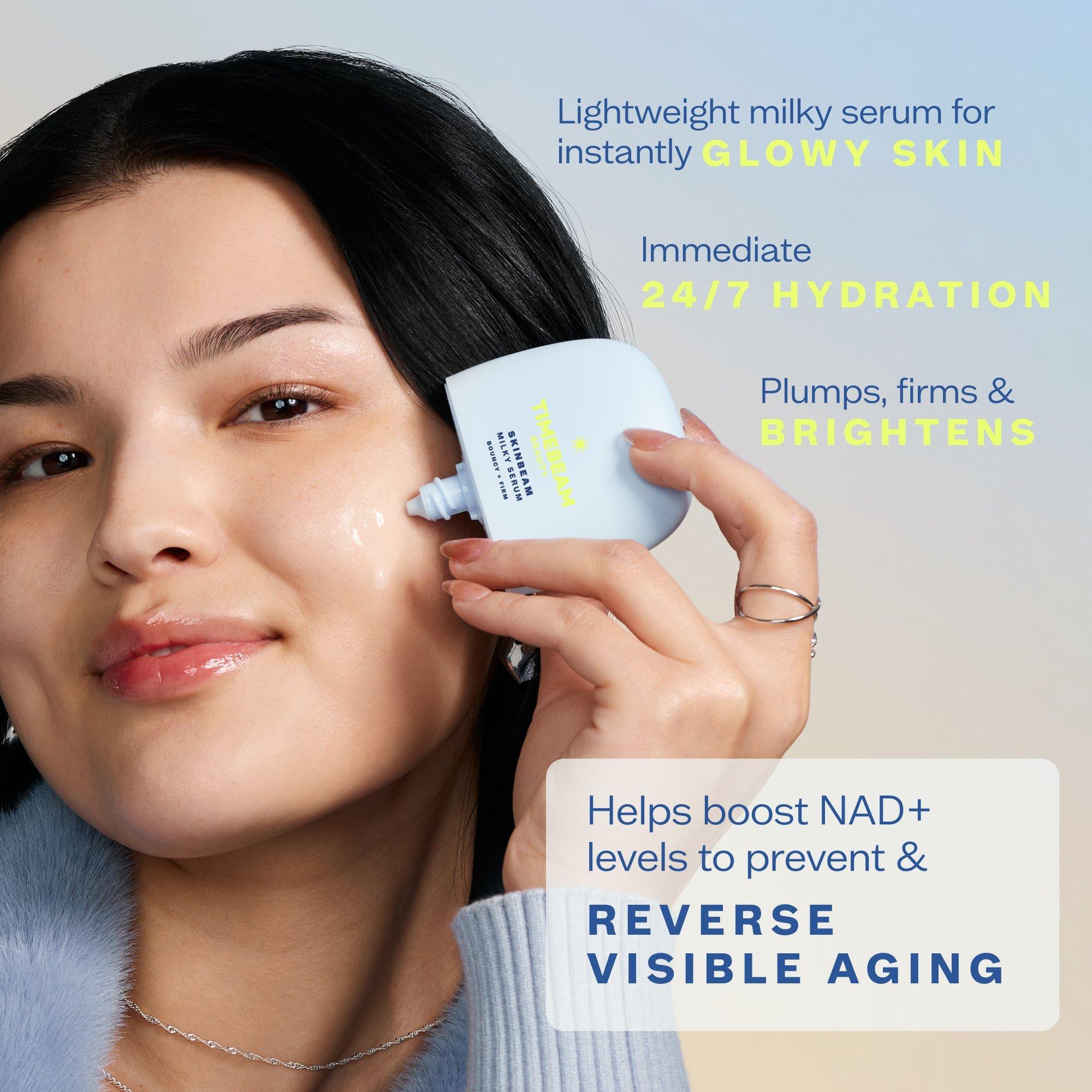 Your 3-in-1 glow essential: serum, moisturizer, and primer in one. Formulated with our NAD+ Booster clinically shown to reverse 8 years of visible aging in less than 8 weeks! Doctor formulated. Dermatologist tested.