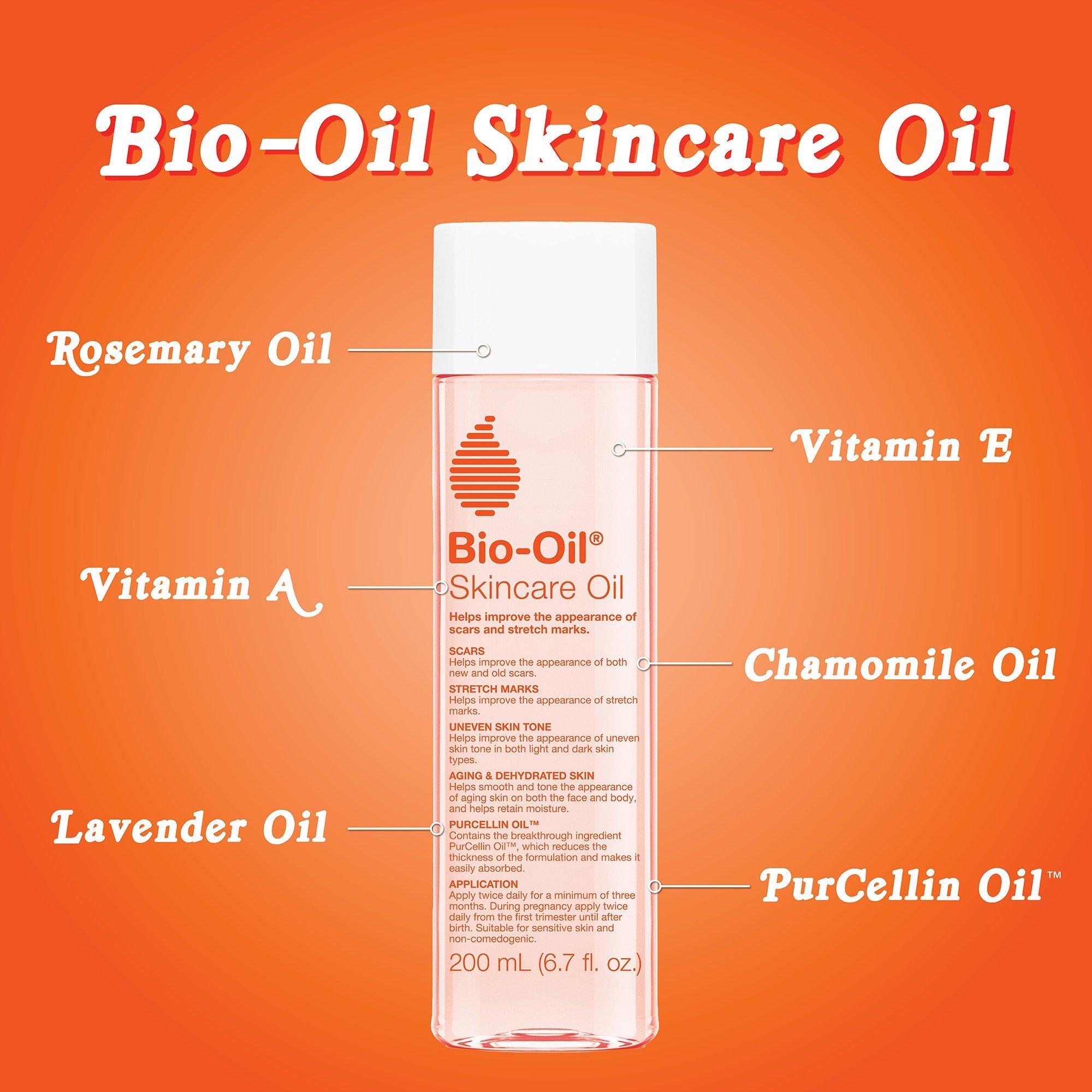 Bio-Oil Skincare Oil reduces the appearance of stretch marks, scars, and other marks due to surgery, injury, acne, aging, pregnancy, and more.