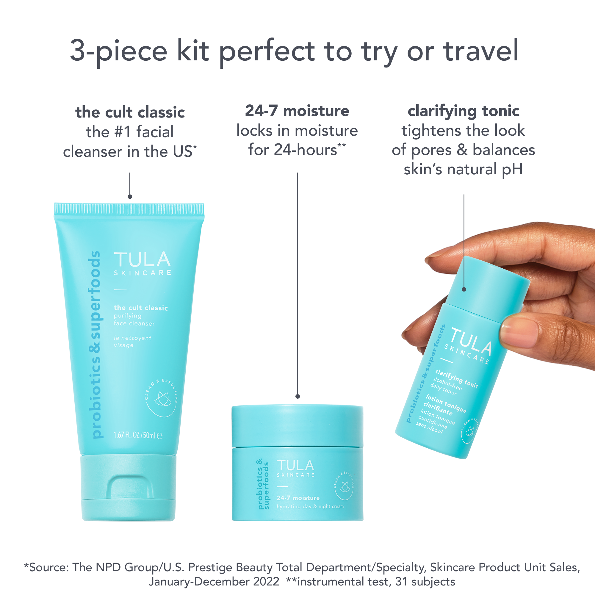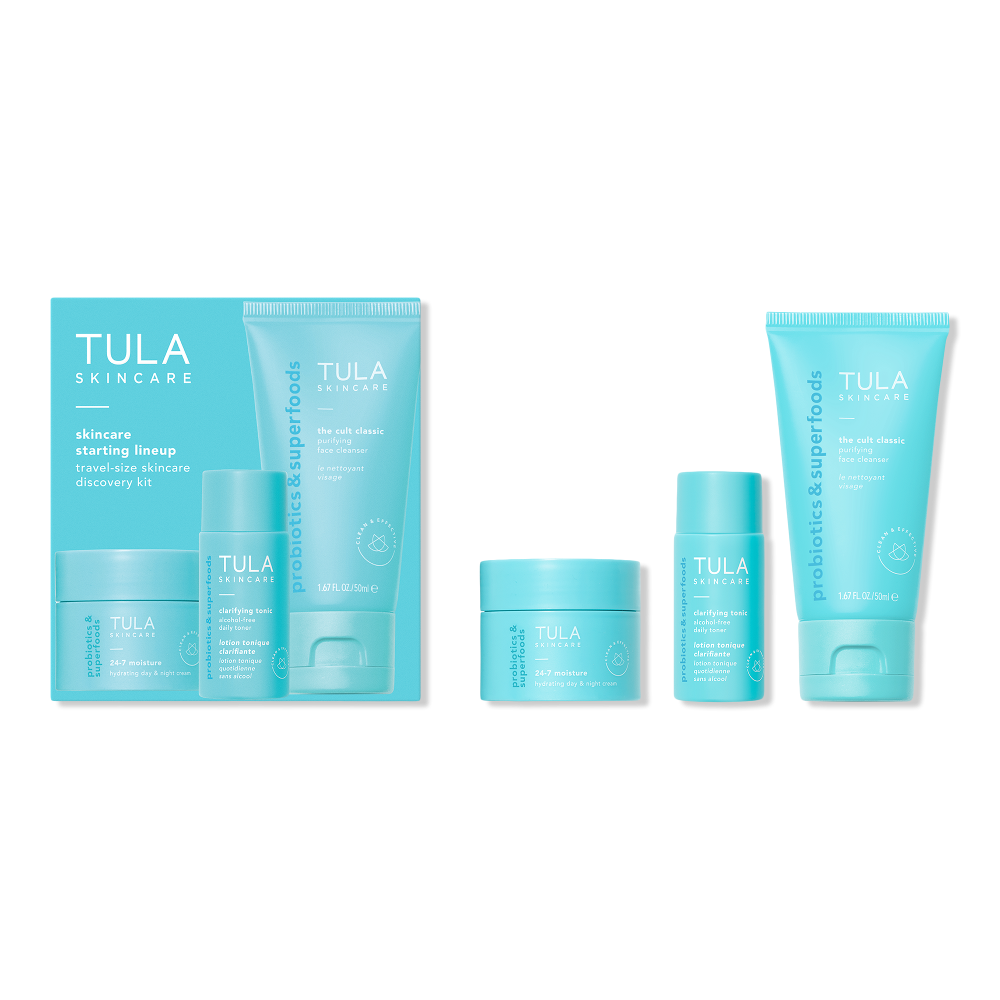 TULA's Skincare Starting Lineup Travel-Size Skincare Discovery Kit includes a bestselling cleanser & moisturizer, plus a pore-refining toner.