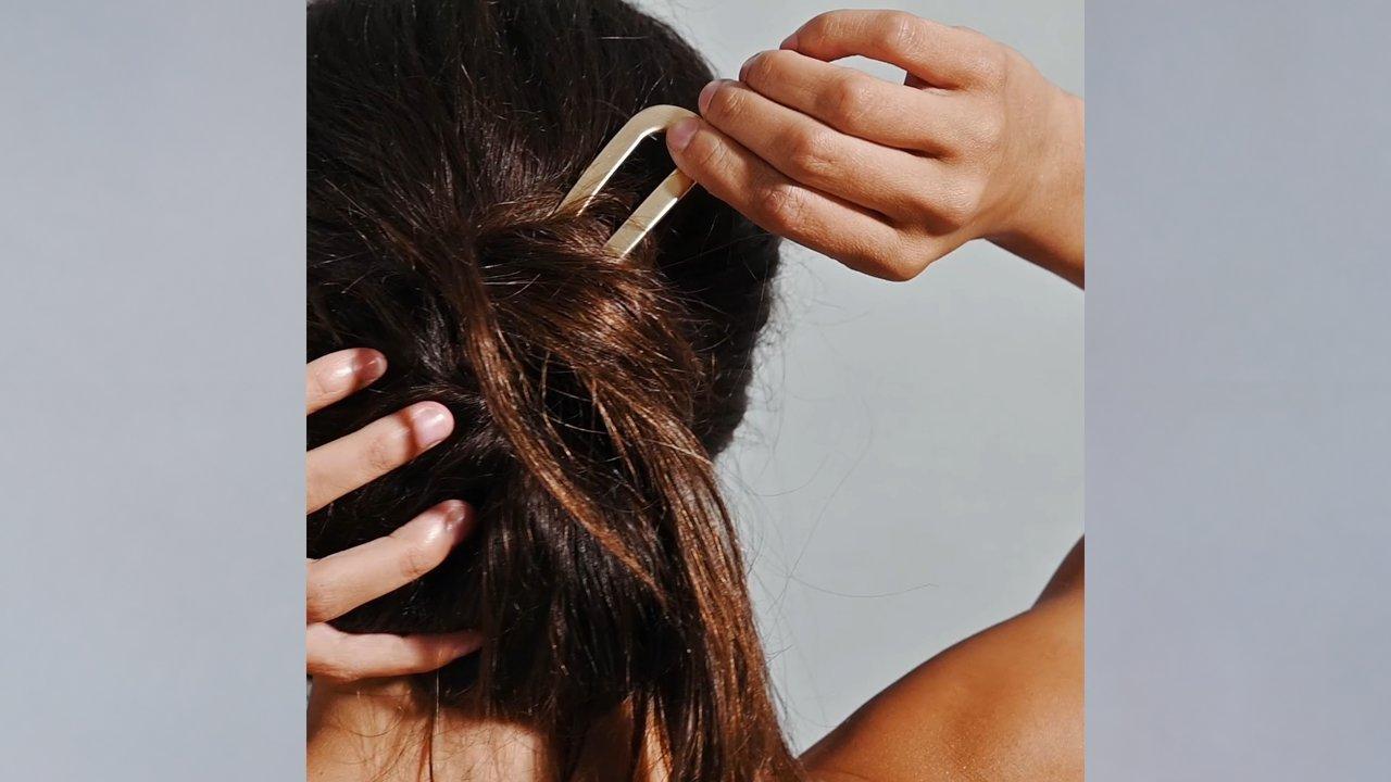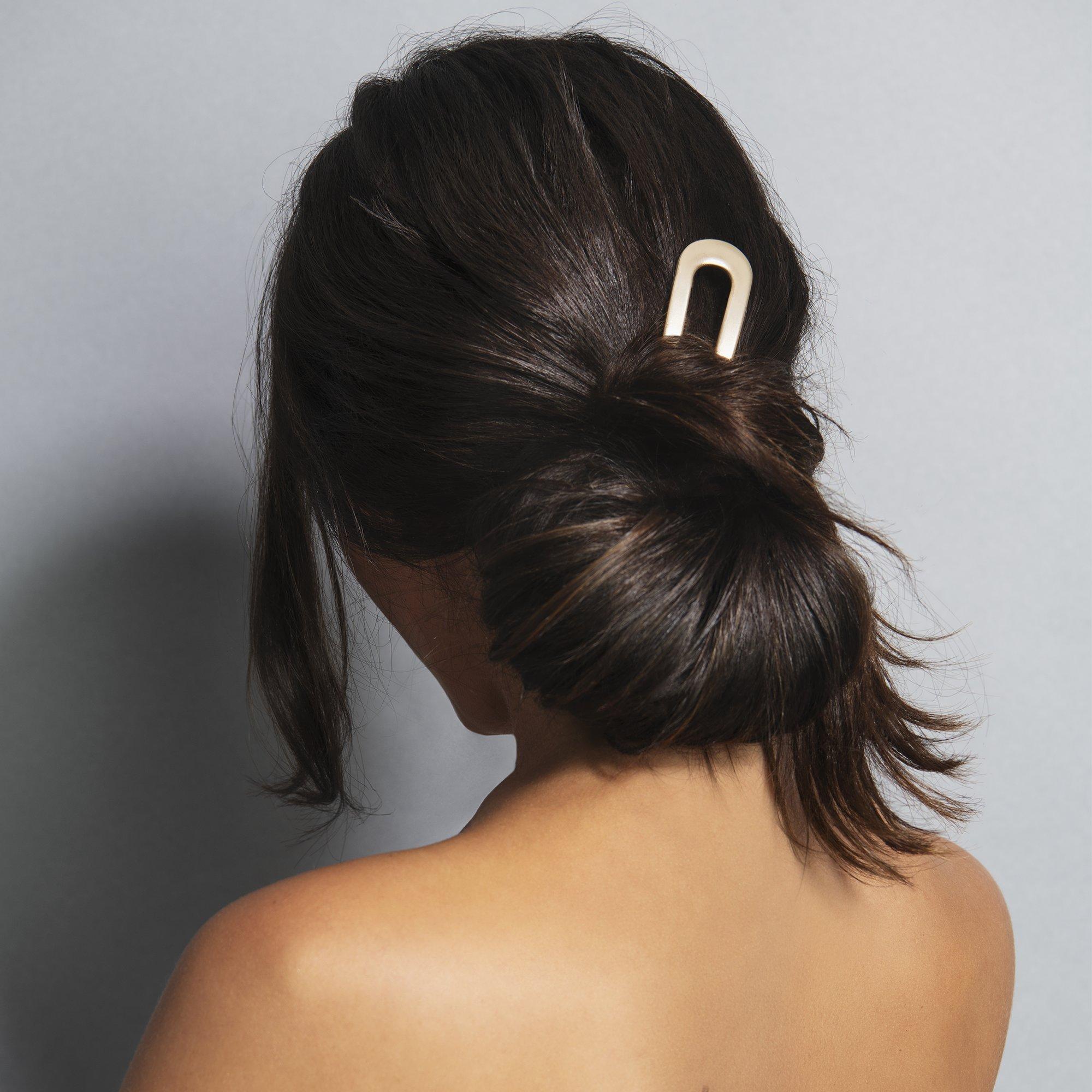 The Hair Edit's sophisticated Sleek Chignon French Hair Pin makes it easy to create a chic bun or half-up. Just twist your hair up, tuck the pin in, and go!