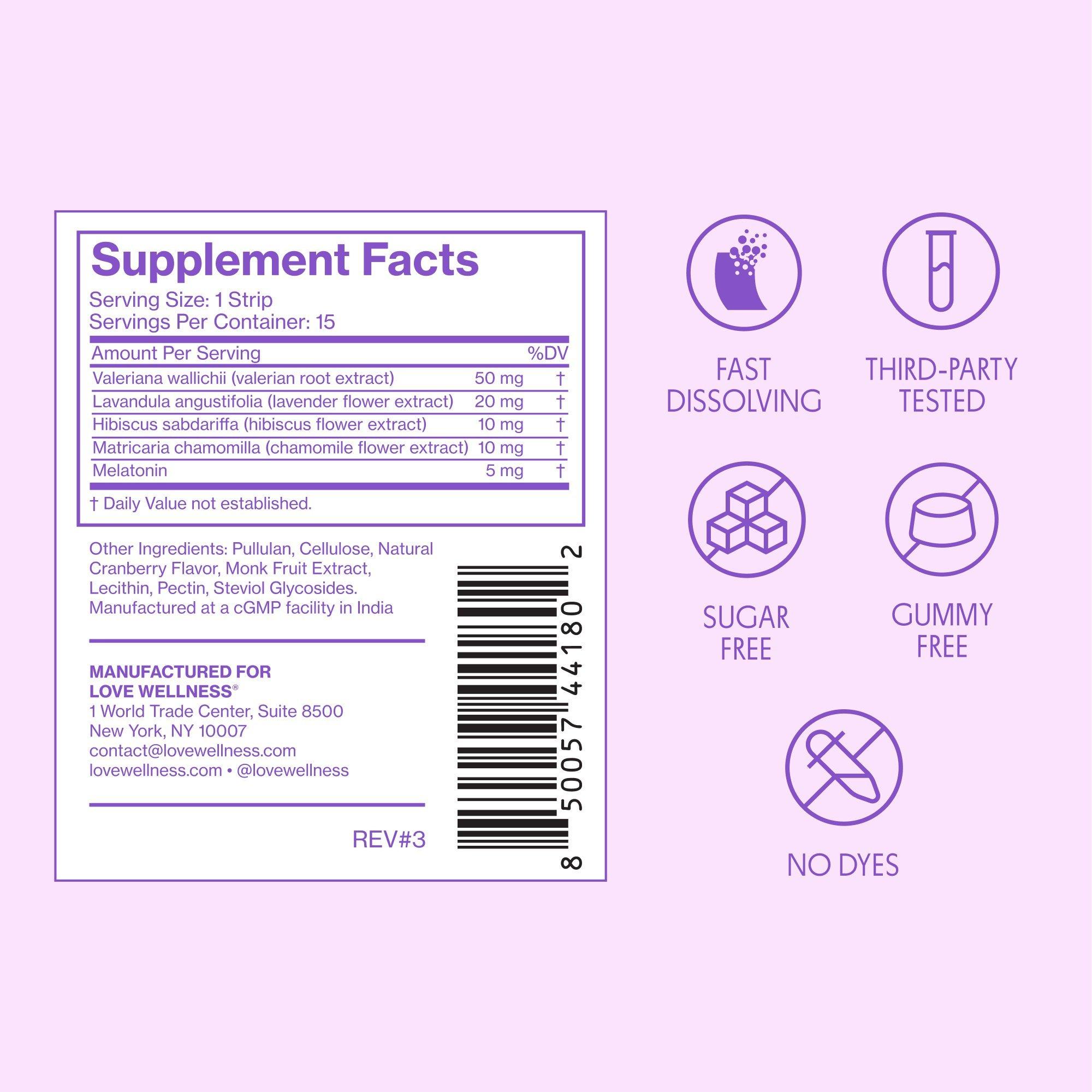 Love Wellness Sleep Quick Melt Strips are fast dissolving, cranberry-flavored strips designed to help you wind down and support occasional sleeplessness. These convenient strips melt on your tongue to support a restful sleep, when you need it most.*