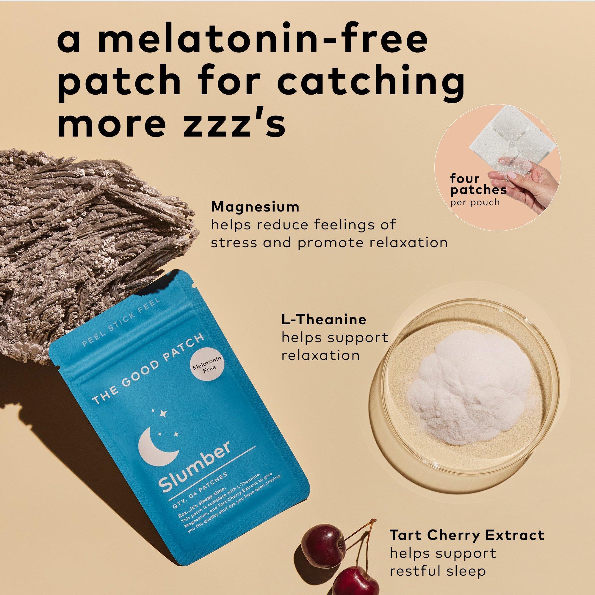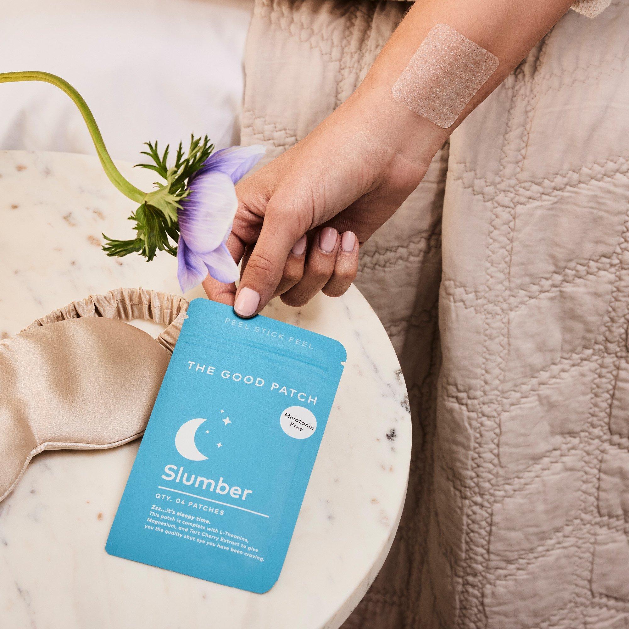 Sleep well with Slumber wearable wellness patches from The Good Patch. Their dermal delivery system works from the outside in. Infused with Tary Cherry, Magnesium & L-Theanine. Melatonin free. Made in the USA, dermatologist-tested, hypoallergenic. 4 patches per pouch.