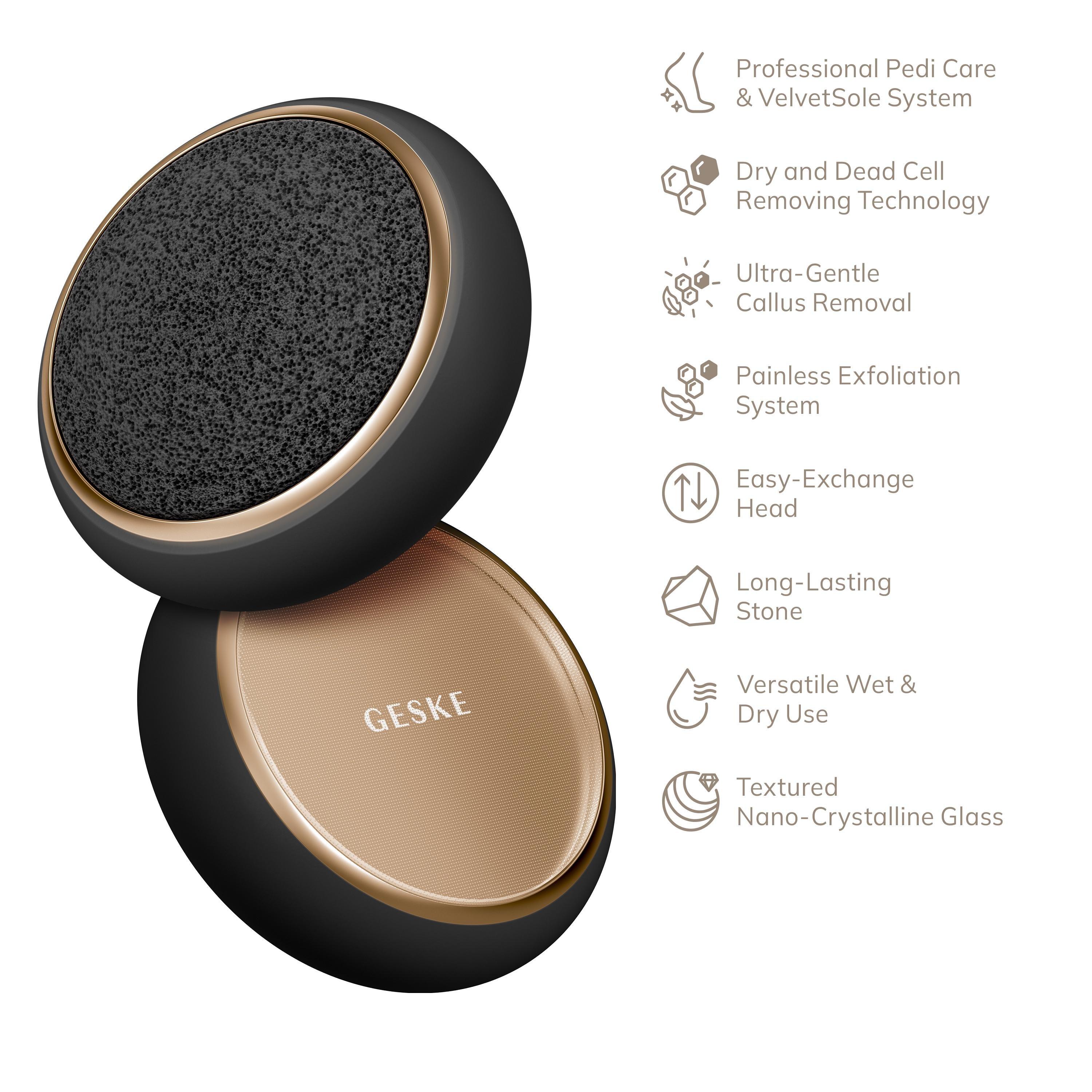 Do you dream of silky-smooth feet? Then the GESKE Dual Foot Smoothener is a must-have! It features high-quality pumice stone and nano crystal glass attachments that can be easily replaced using the click system. Reveal velvety soft soles in no time with this magical, two-sided foot exfoliator.