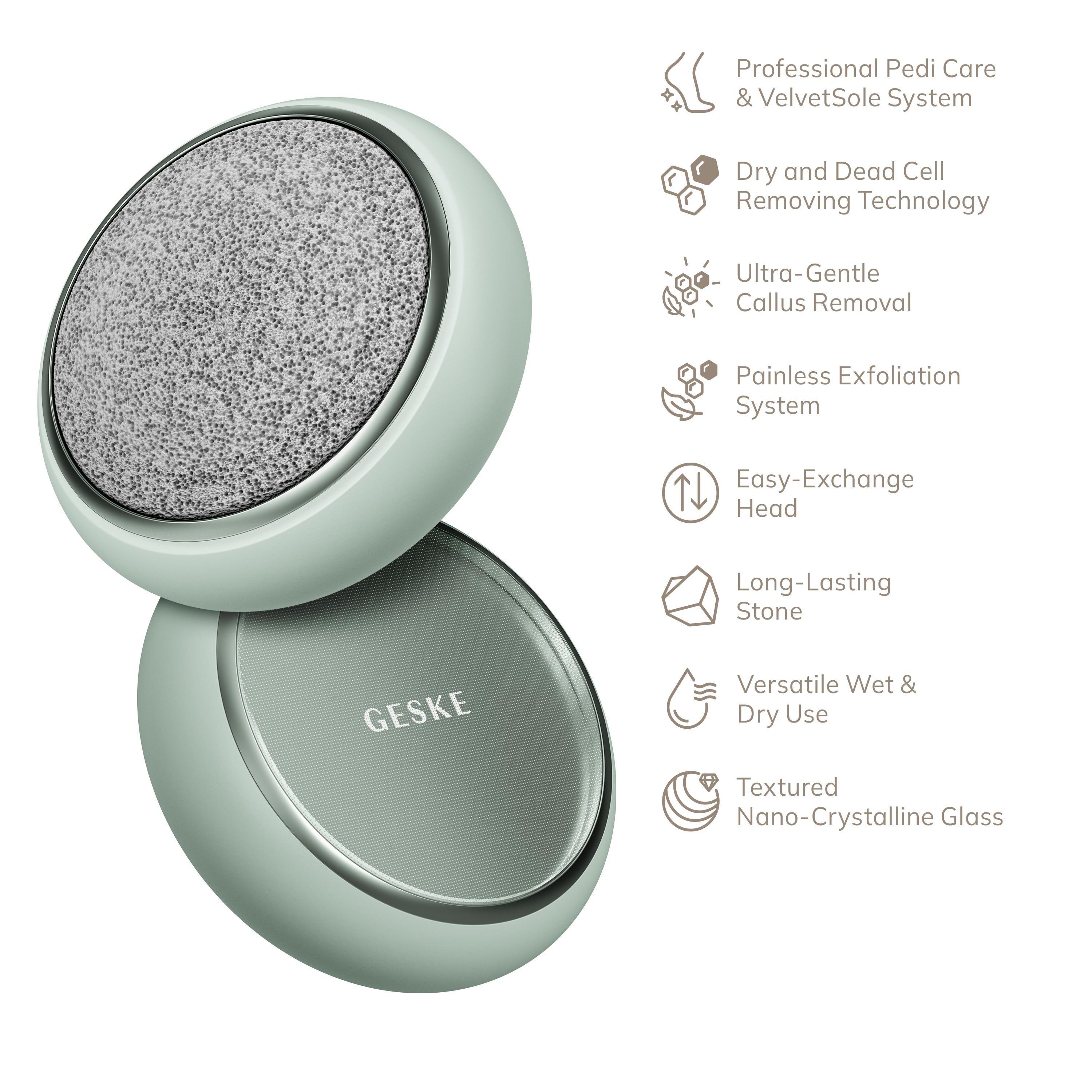 Do you dream of silky-smooth feet? Then the GESKE Dual Foot Smoothener is a must-have! It features high-quality pumice stone and nano crystal glass attachments that can be easily replaced using the click system. Reveal velvety soft soles in no time with this magical, two-sided foot exfoliator.