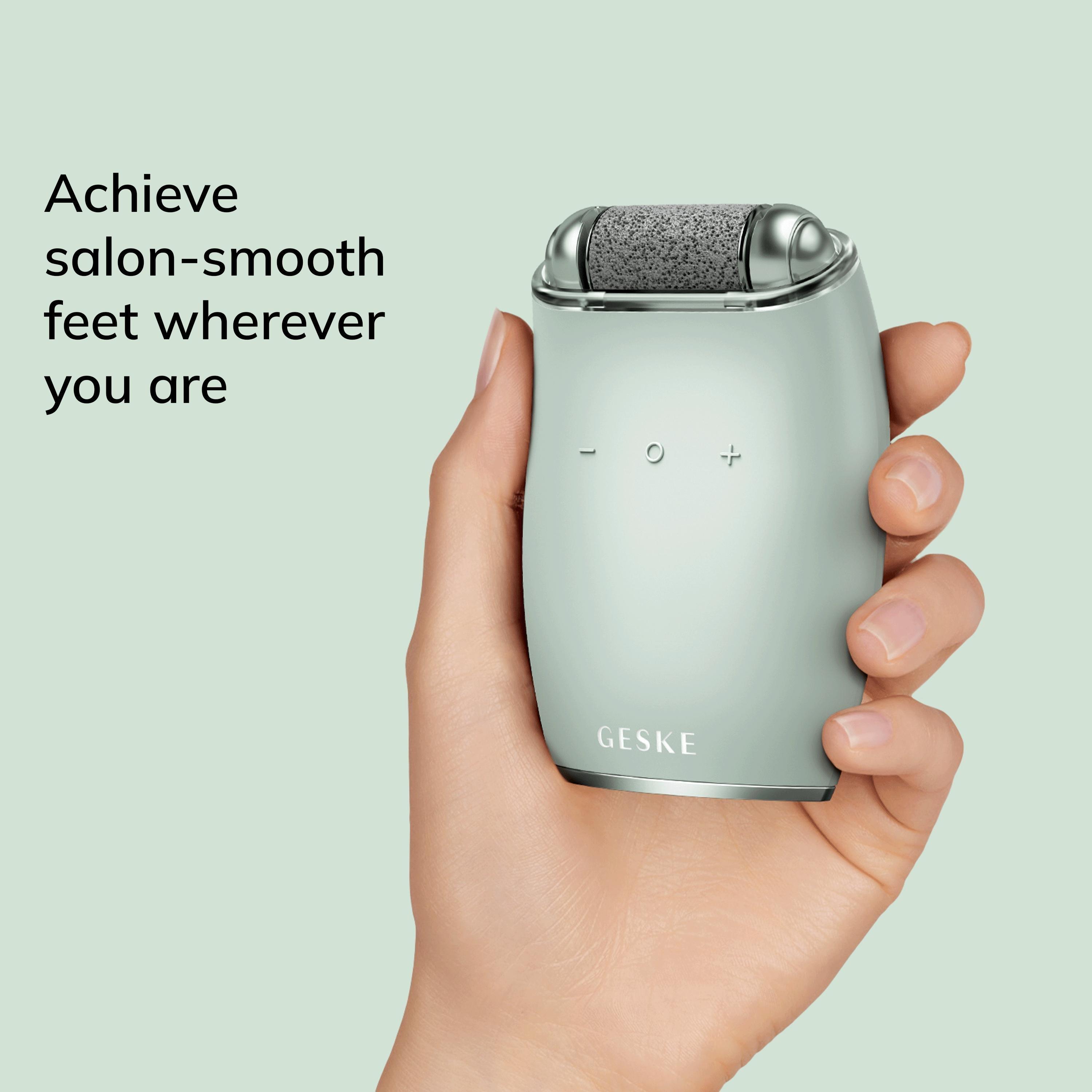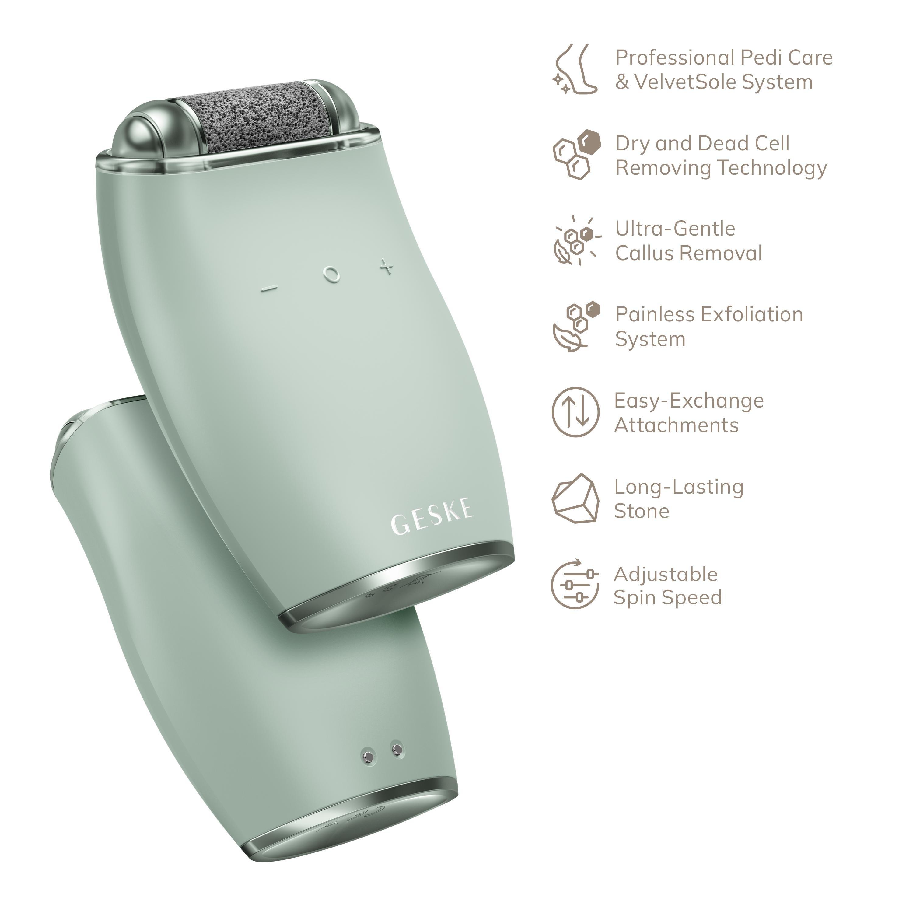 The GESKE Electric Pumice Foot Smoothing Roller is a multifunctional roller designed for professional foot care and exfoliation. Efficient, handy and easy to use, this callus remover comes with an easily replaceable pumice stone roller and ensures smooth skin on every inch of your feet.