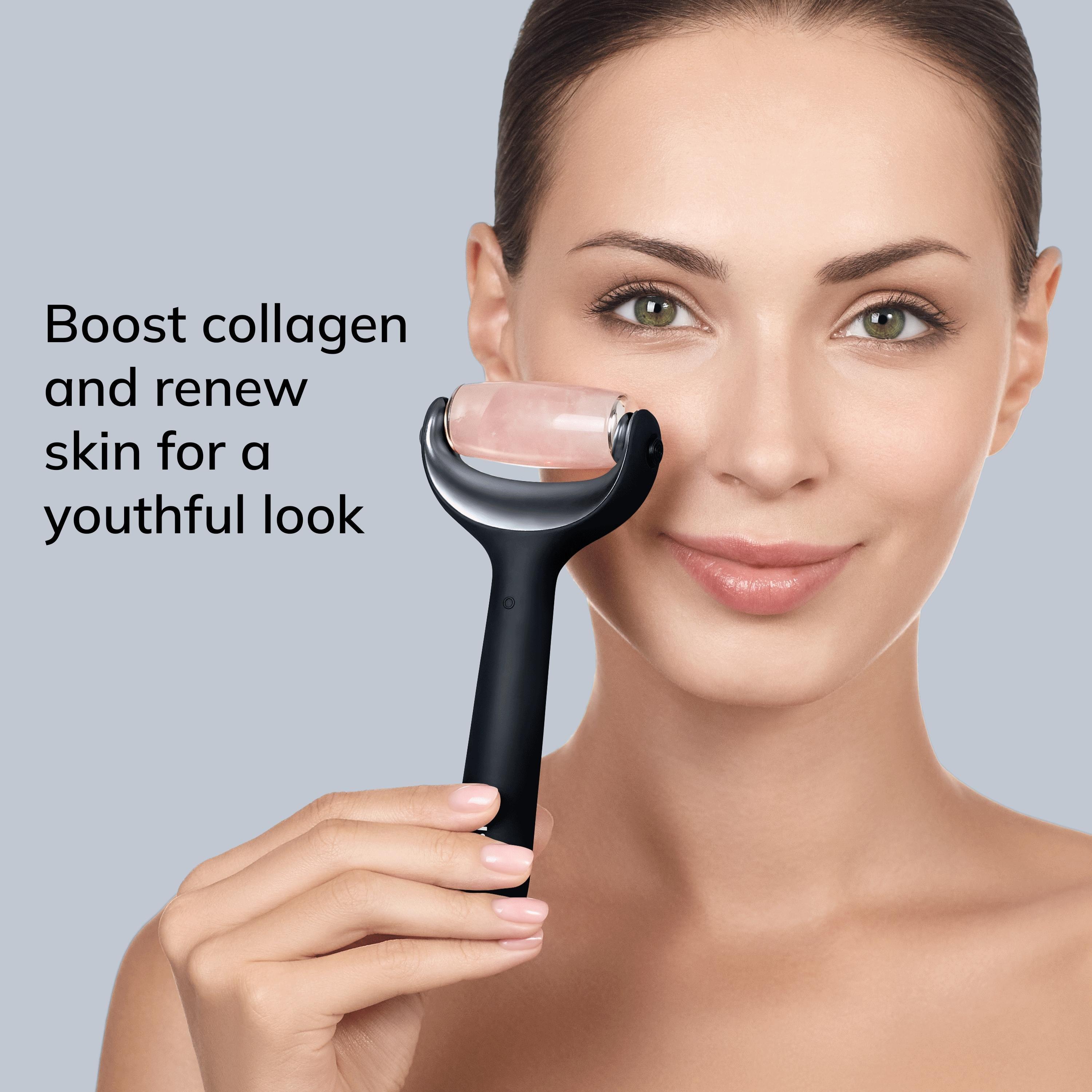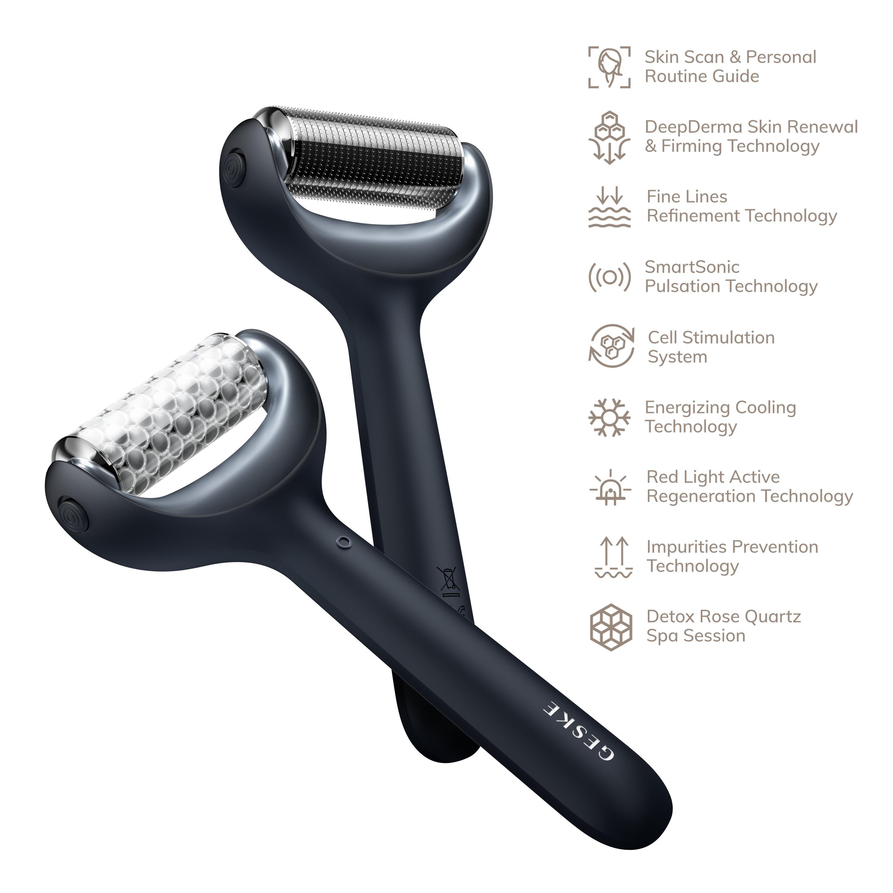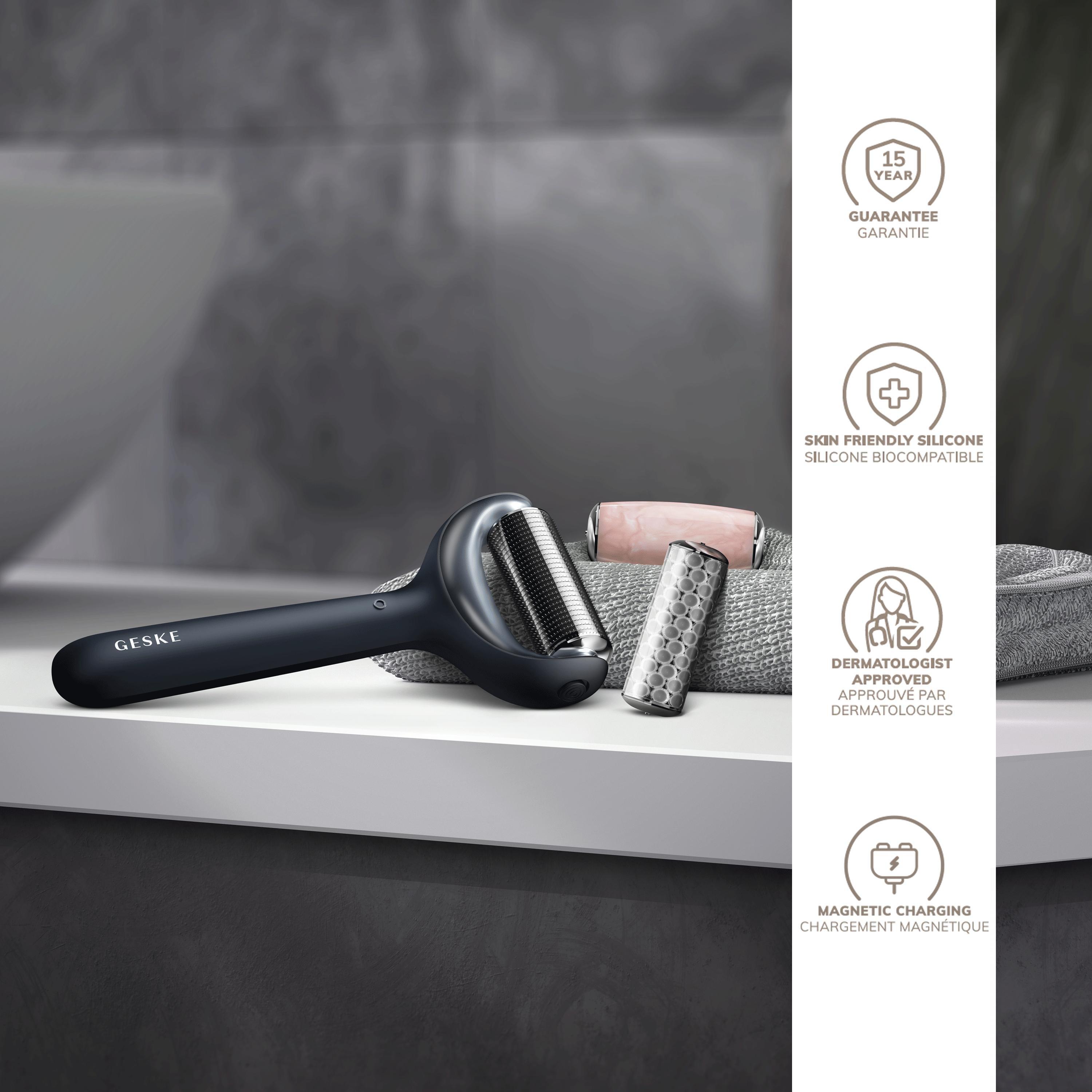 Stimulate your skin with the GESKE SmartAppGuided MicroNeedle Face & Body Roller 9 in 1. This innovative beauty device comes with a MicroNeedle, a Cooling head and a Rose Quartz head.