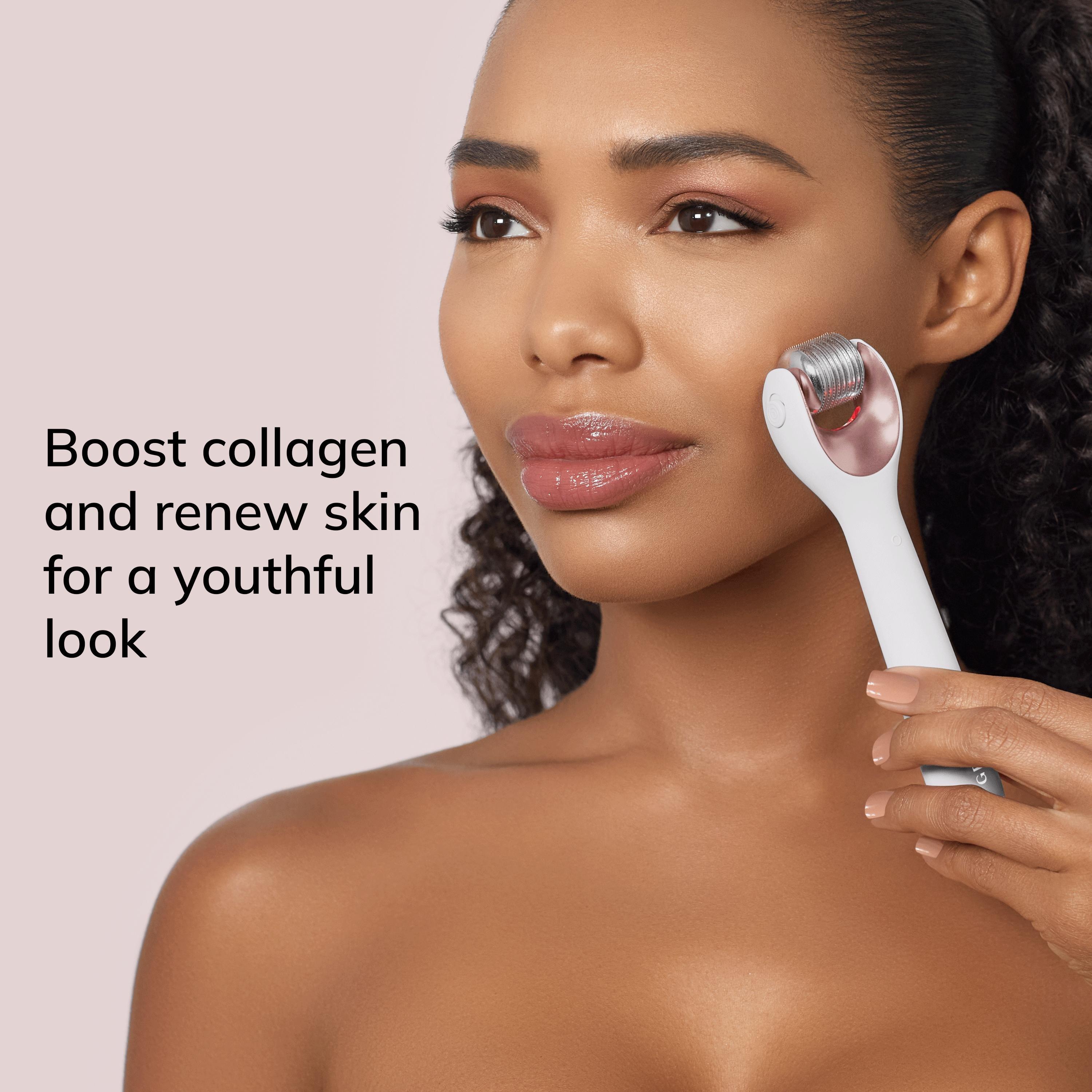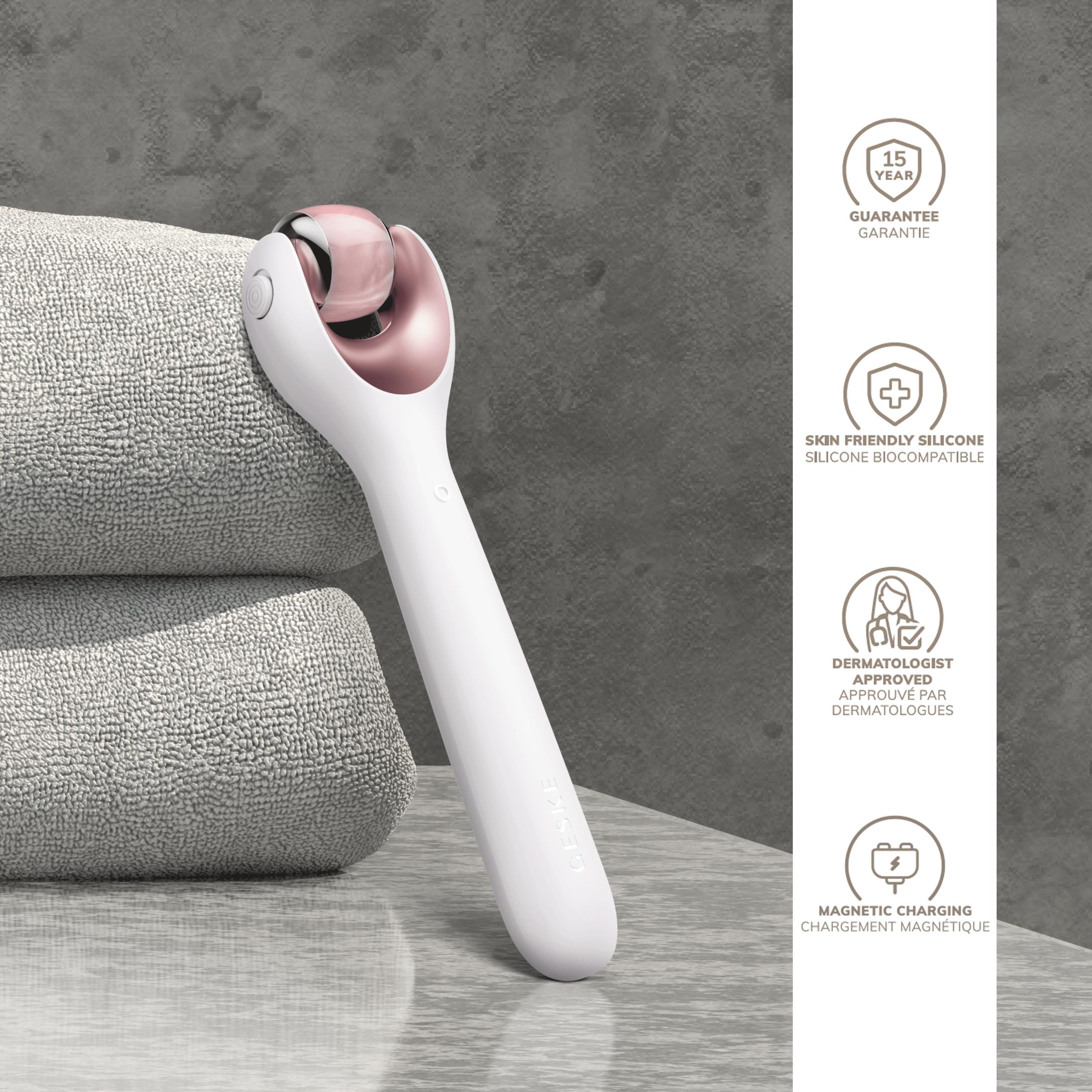 Stimulate your skin with the GESKE SmartAppGuided MicroNeedle Face Roller 9 in 1. This innovative beauty device comes with a MicroNeedle, a Cooling and a Rose Quartz head.