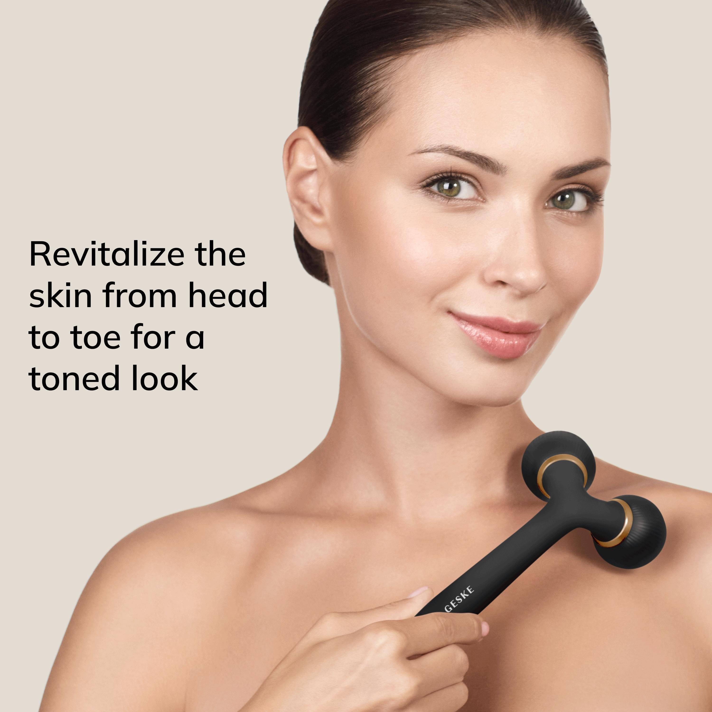 Now all you need for firm, radiant skin is a relaxing and stimulating massage using GESKE"s SmartAppGuided Sonic Facial & Body Roller 4 in 1.