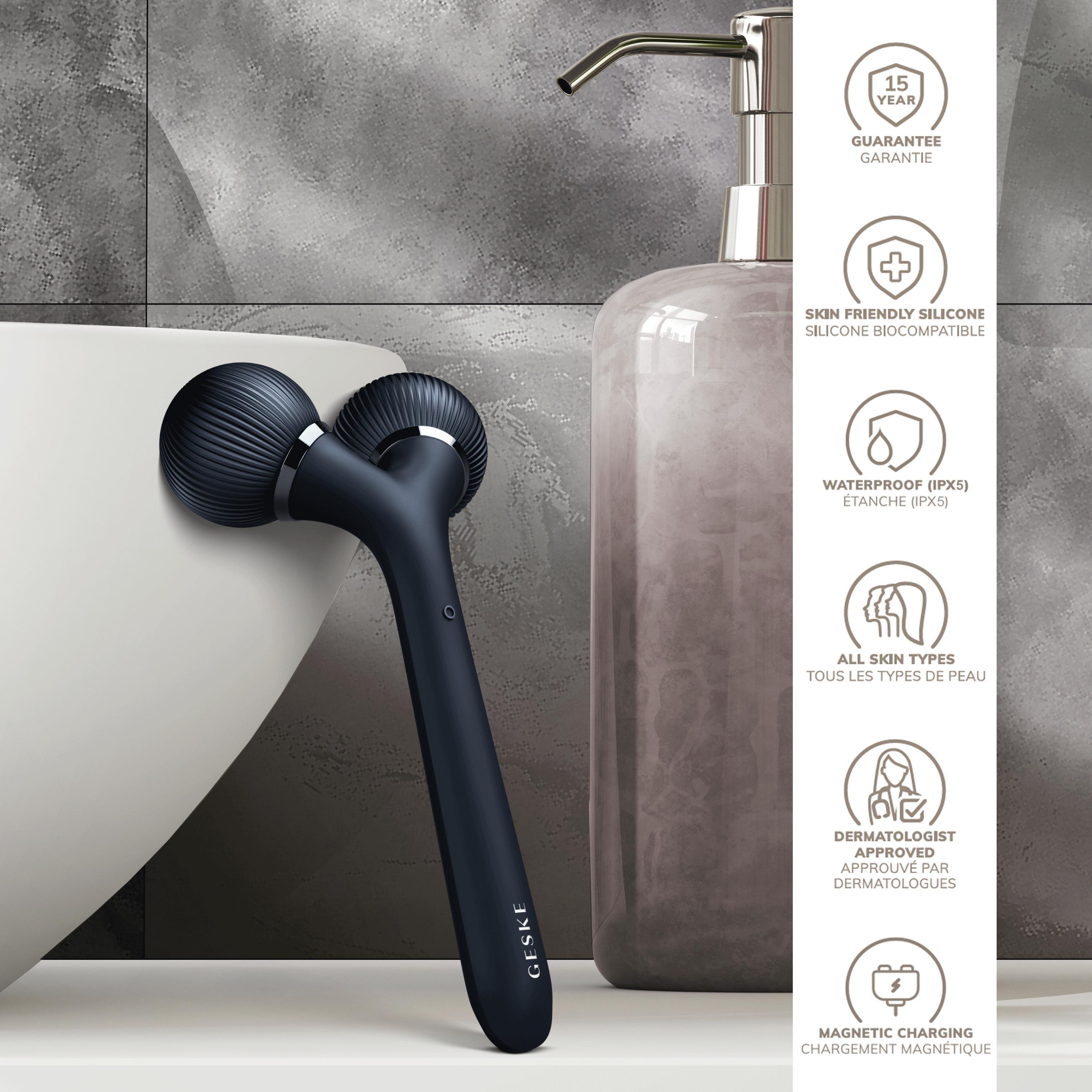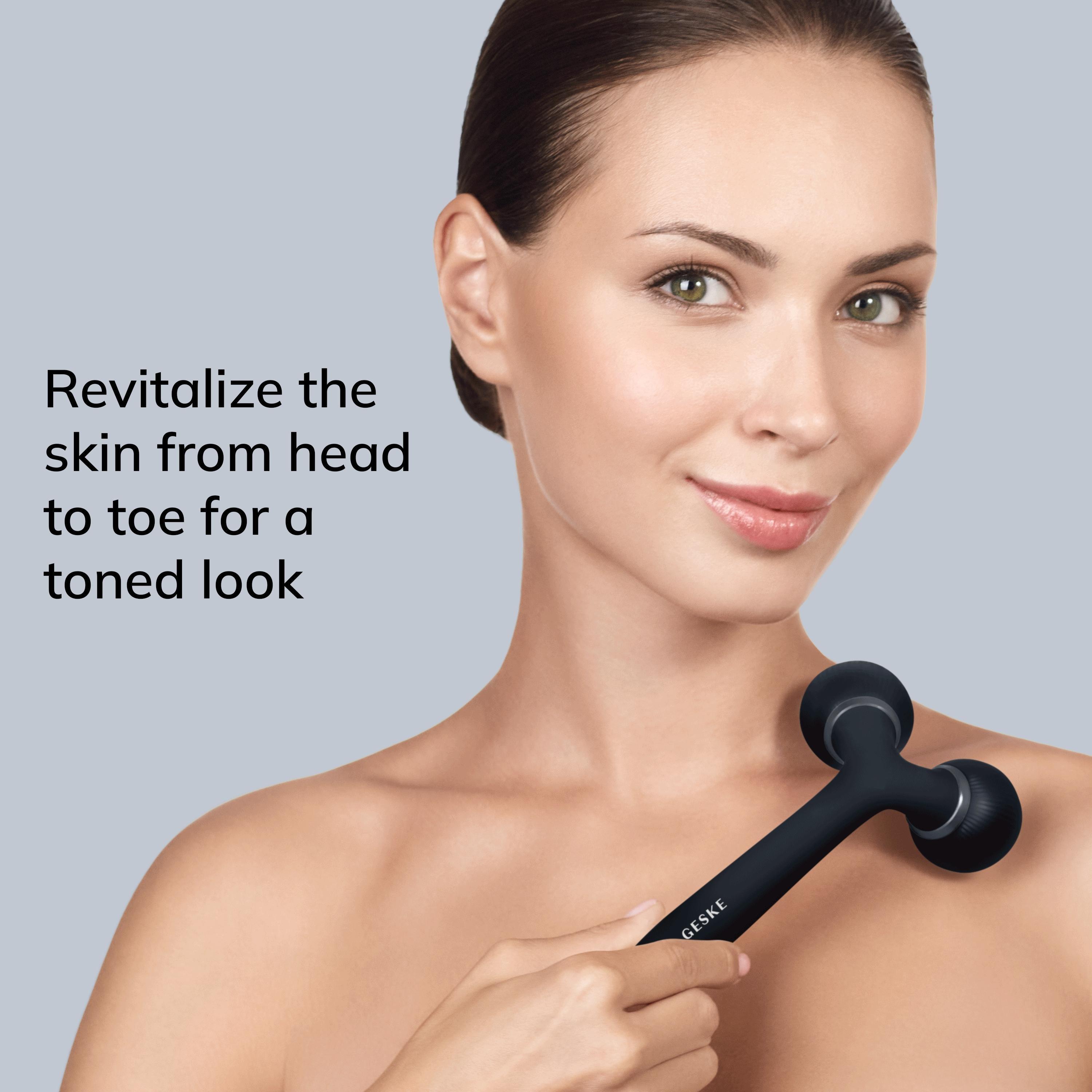 Now all you need for firm, radiant skin is a relaxing and stimulating massage using GESKE"s SmartAppGuided Sonic Facial & Body Roller 4 in 1.