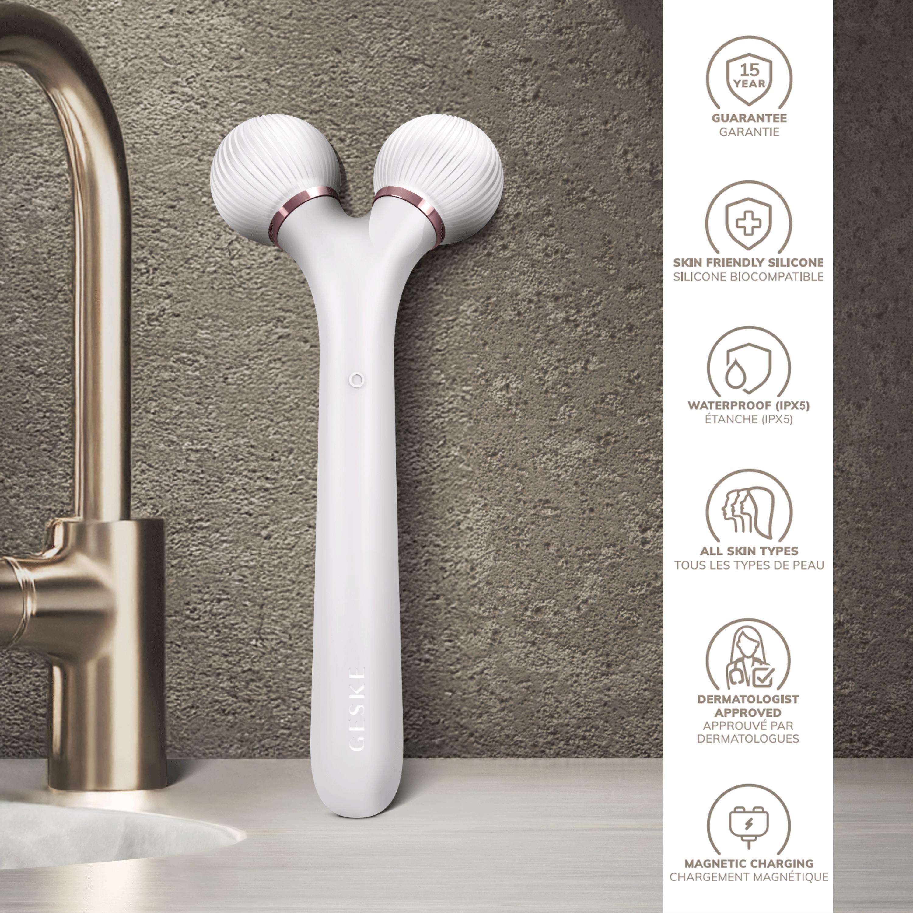 Looking for a rejuvenating skin massage around the sensitive eye area? Look no further! GESKE's SmartAppGuided Sonic Facial Roller 4 in 1 is the device for you!