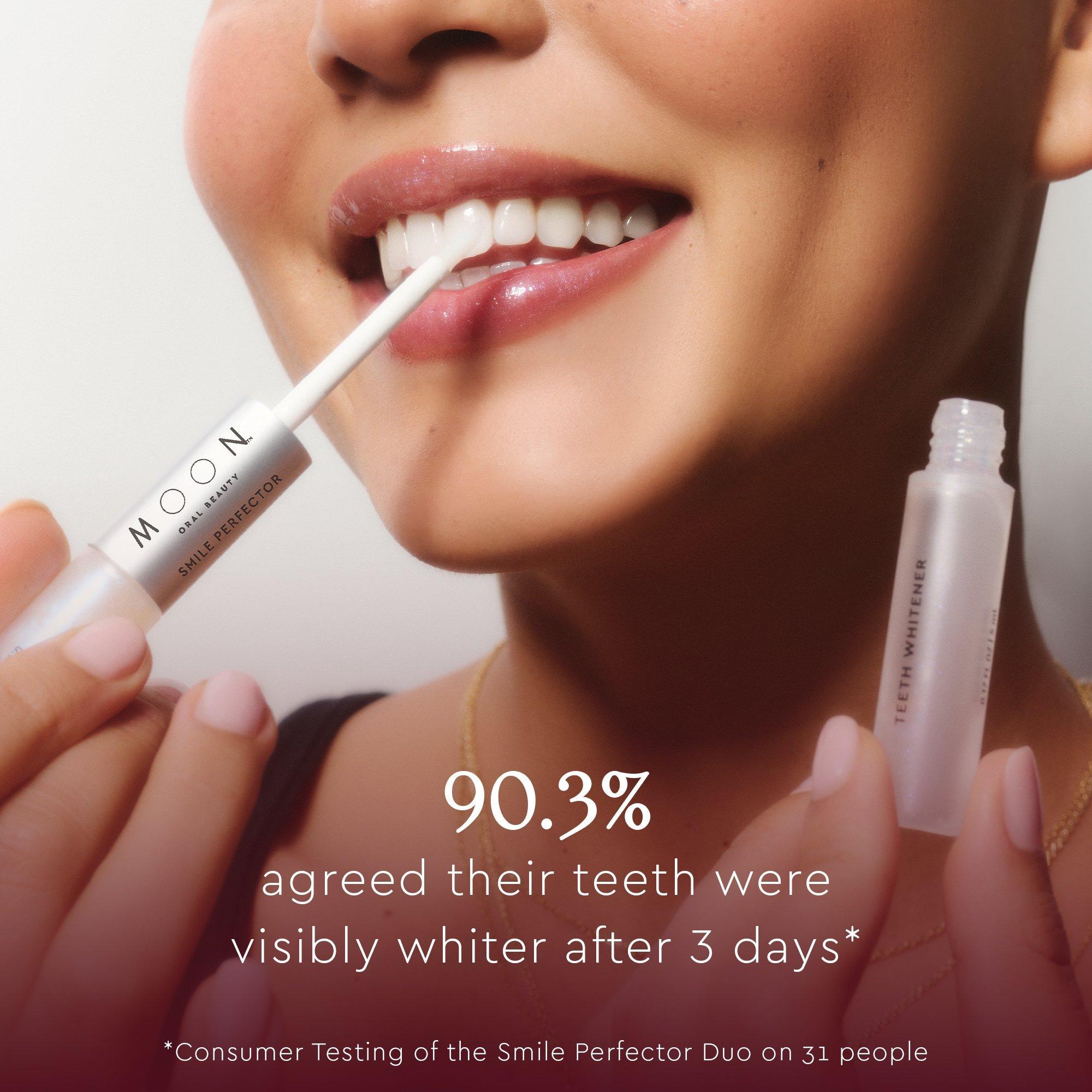 Experience the perfect duo for Whiter Teeth and Brighter Smiles! Introducing Moon's award-winning Smile Perfector Duo - a first-of-its-kind dual-ended teeth whitener and lip brightener that combines 2 smile-enhancing formulas for an instantly boosted smile.