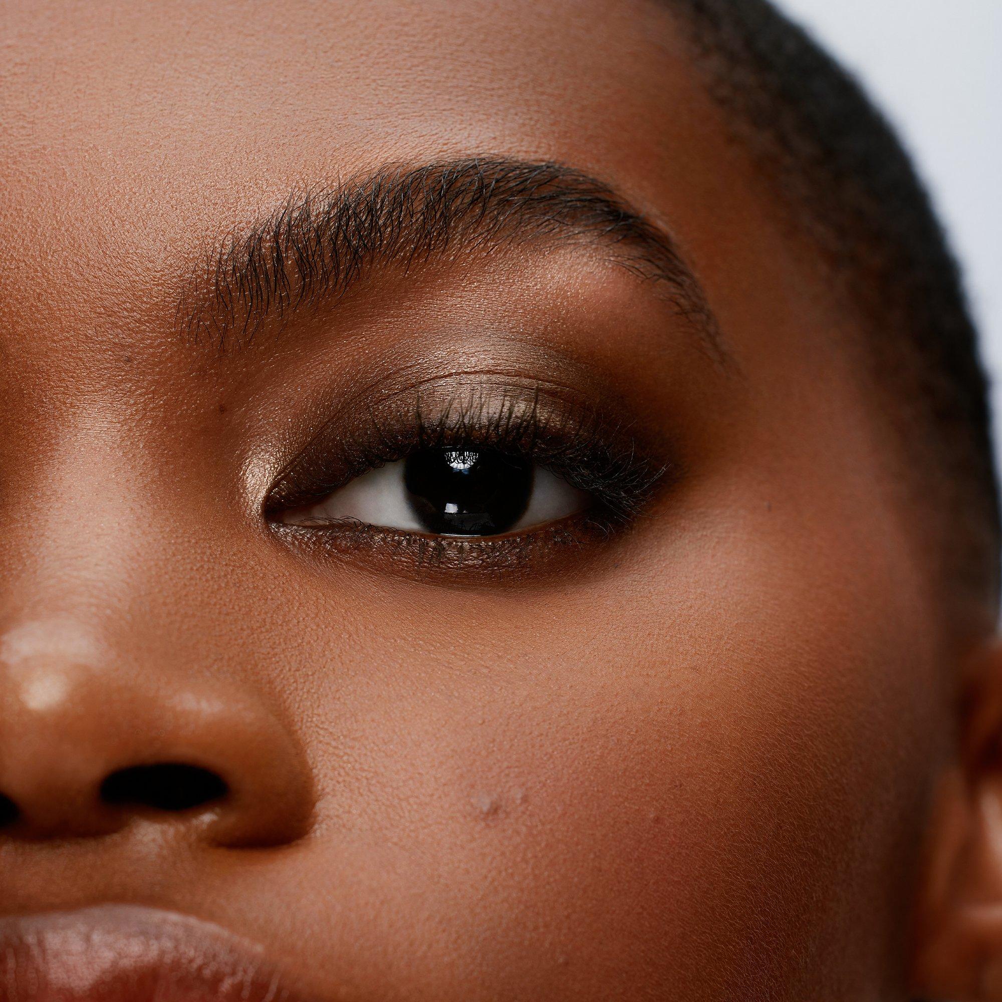 After defining your lash line with the pencil, use the shadow-coated smudger at the opposite end to set the liner and diffuse outward until your desired level of drama is achieved.