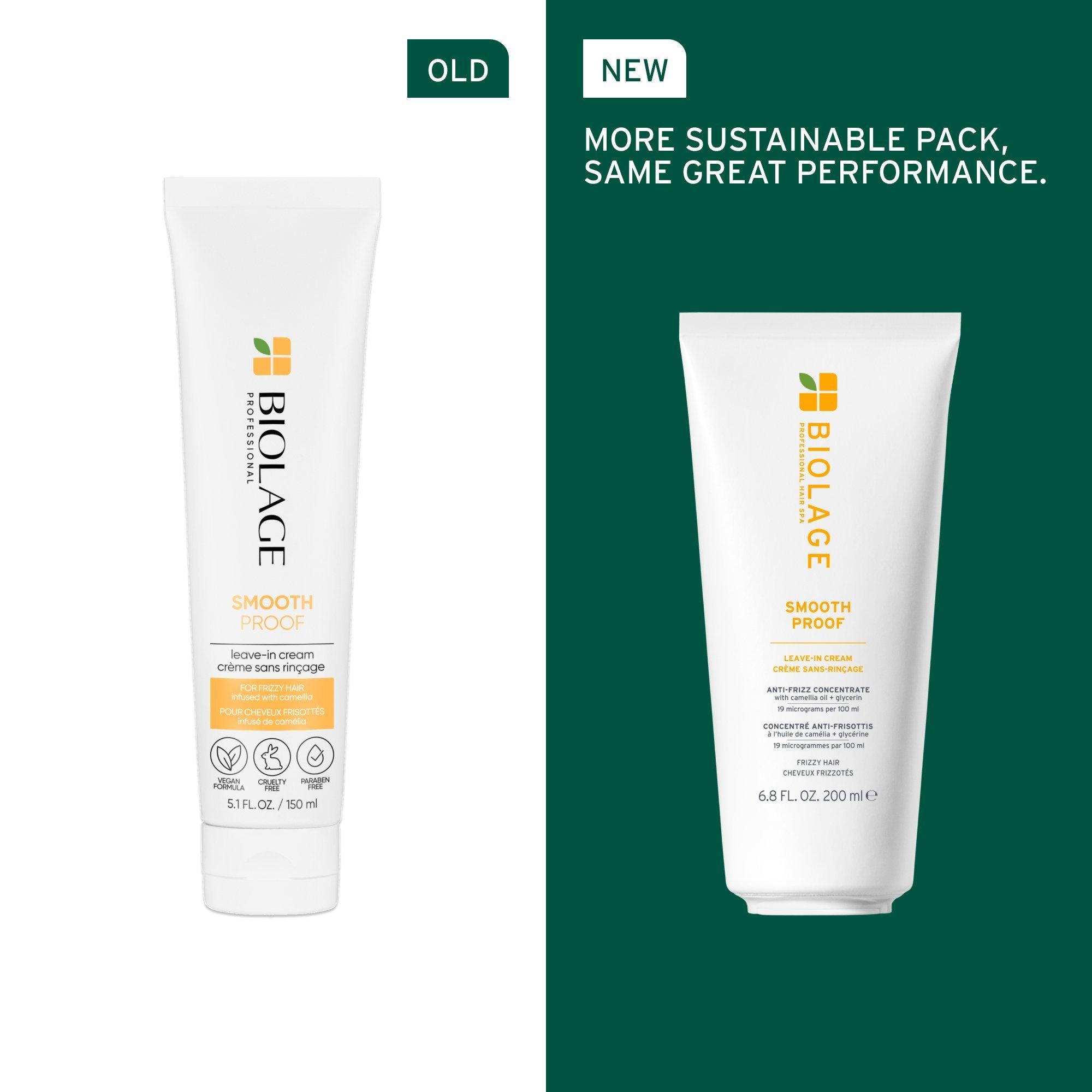 Biolage Smooth Proof Leave-In Cream nourishes frizzy hair for long-lasting smoothness, manageability & shine. Infused and micro-dosed with camellia oil & glycerin, the leave-in cream controls frizz, static & flyaways without weighing hair down.