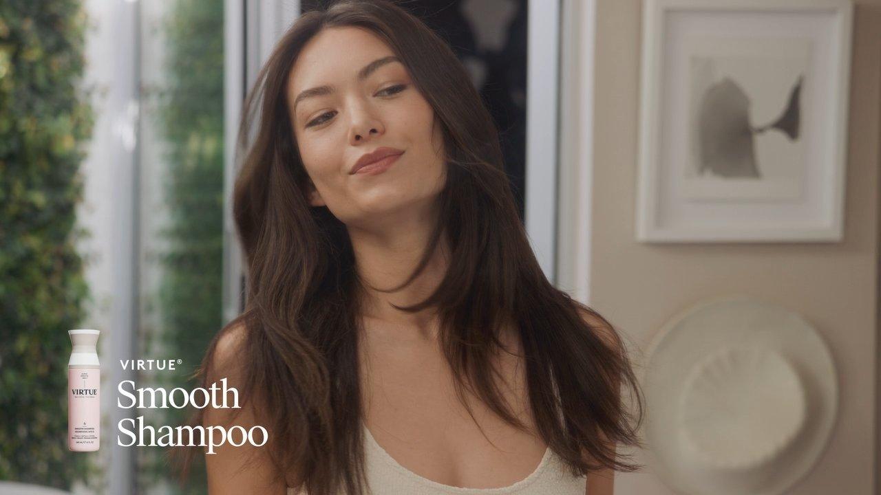 Turn frizz-prone hair into silky strands on their best behavior with Virtue's Smooth Shampoo.