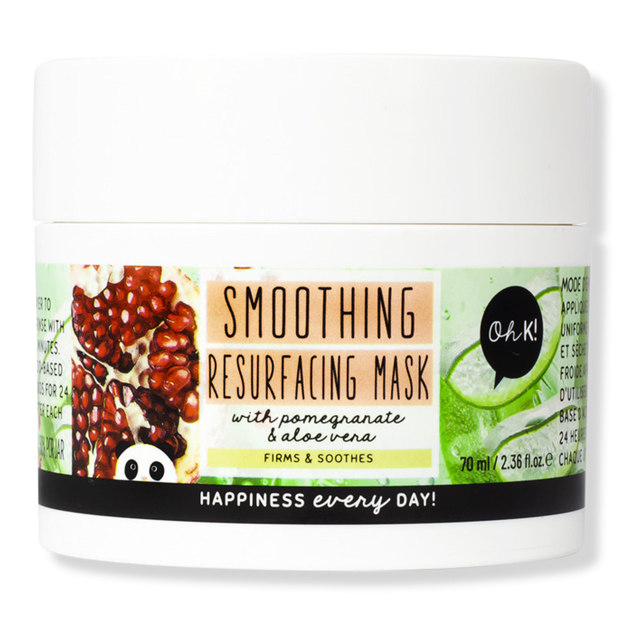 Oh K! Smoothing Resurfacing Mask with Pomegranate and Aloe Vera is for you if you're dealing with clogged pores, rough patches, or bumps. This wash-off mask gently exfoliates, resurfaces, and retexturizes skin.