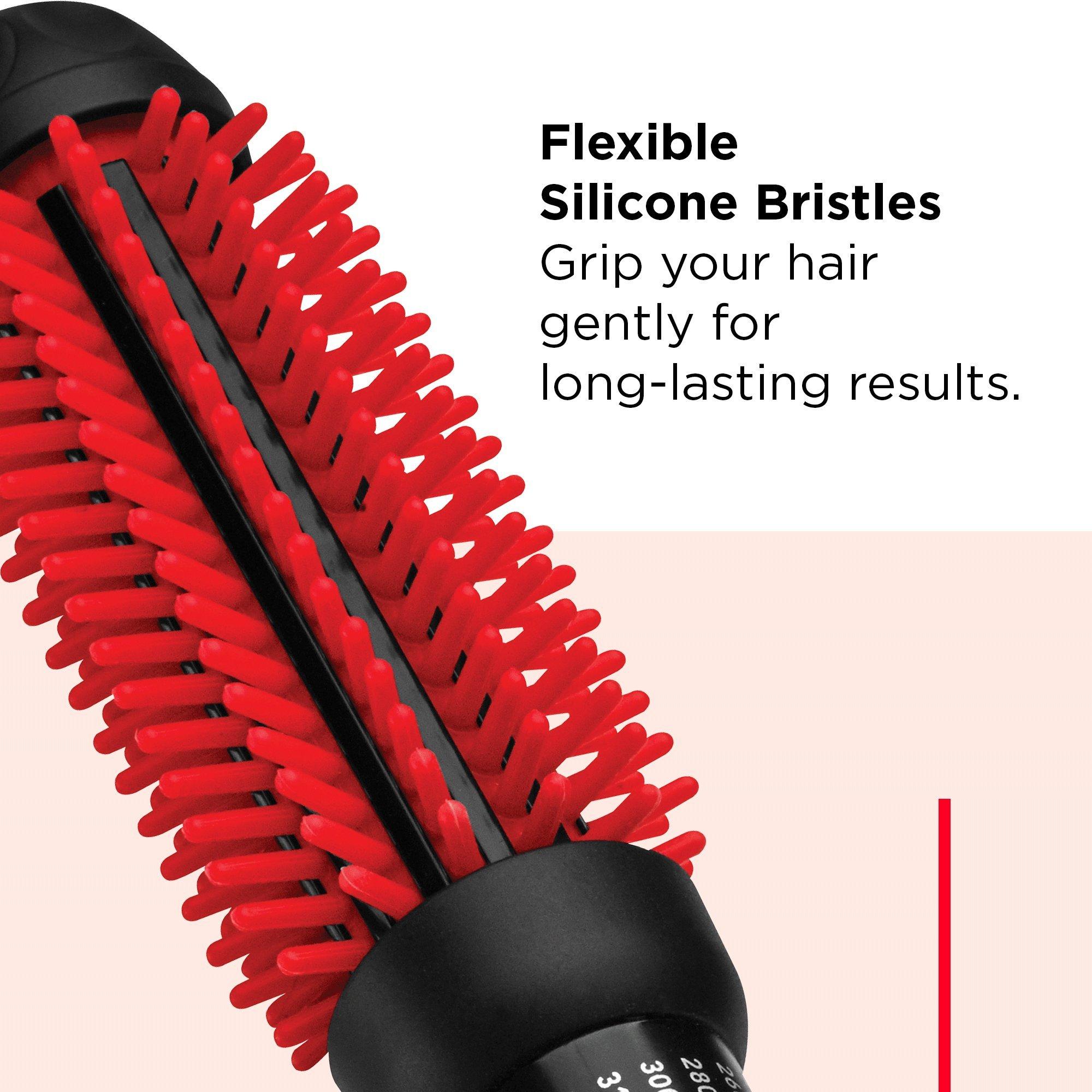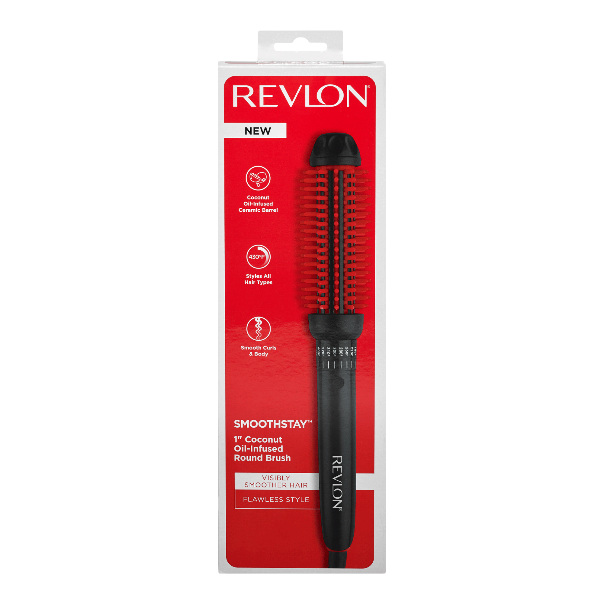 Get visibly shinier, smoother hair with the Revlon SmoothStay 1" Coconut Oil-Infused Round Brush. This hot styling brush features a coconut oil-infused ceramic barrel and flexible silicone bristles that stay cool while gently gripping hair. Create curls, waves, and body with a silky finish.