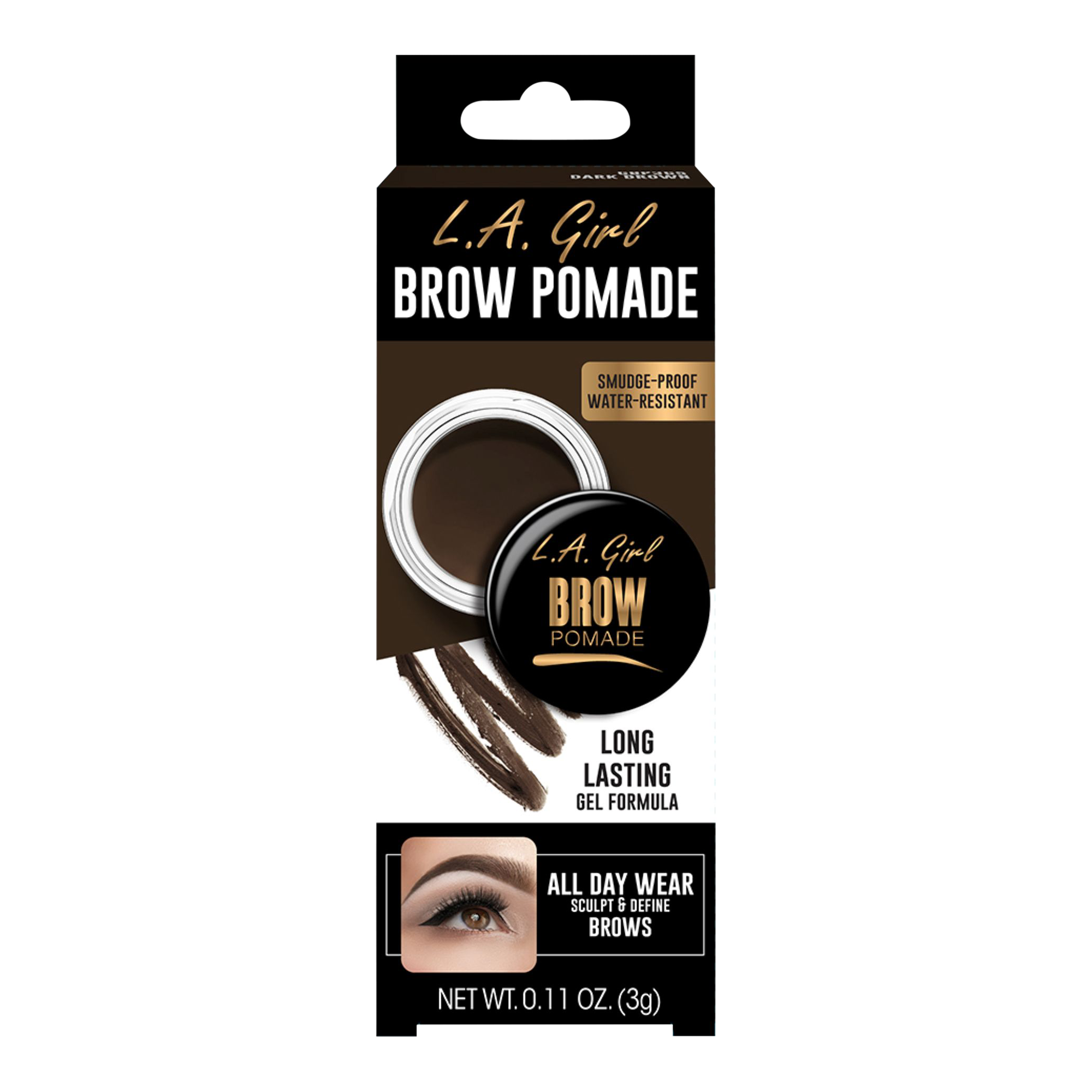 Bold or natural, the L.A. Girl Smudge-Proof Creamy Brow Pomade can do both! This water-resistant, creamy formula adds definition, while locking brows in place without smudging.