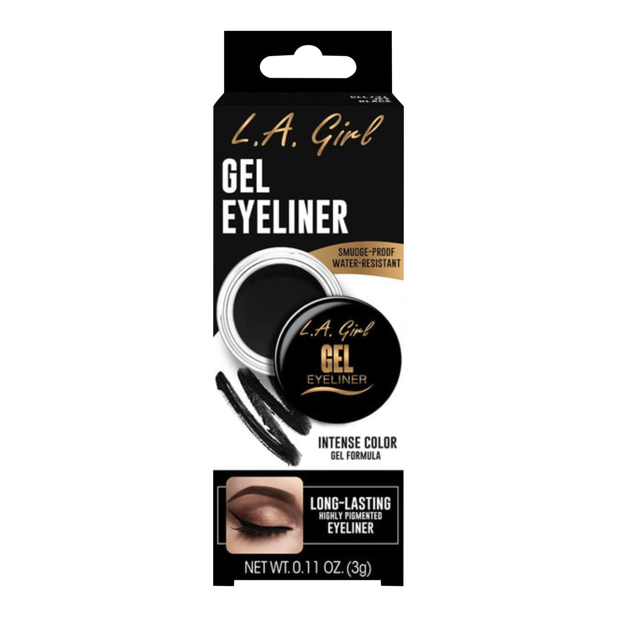The highly pigmented L.A. Girl Smudge-Proof Gel Eyeliner applies smoothly and easily to create a sharp wing, graphic liner, or smoky eye that lasts all day.