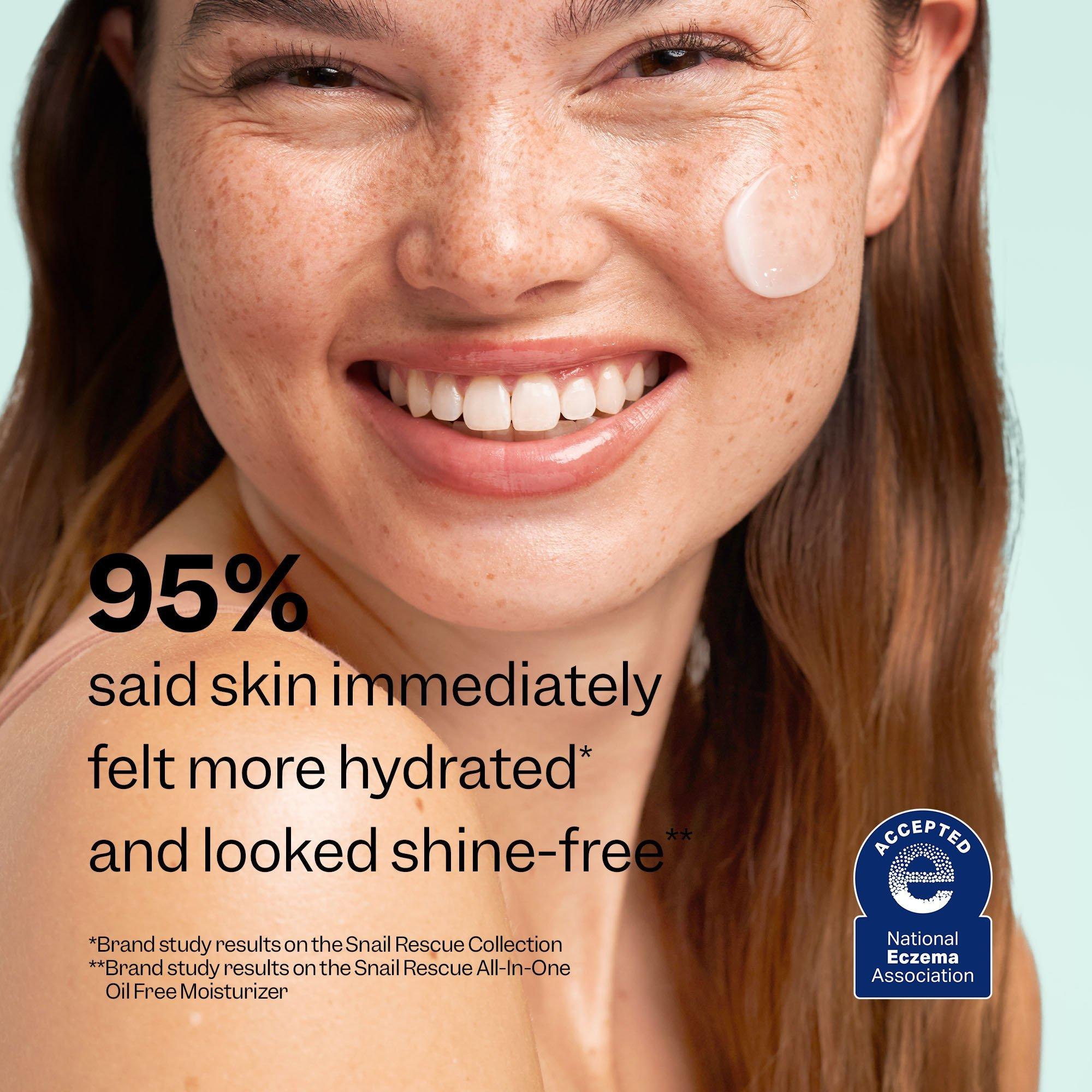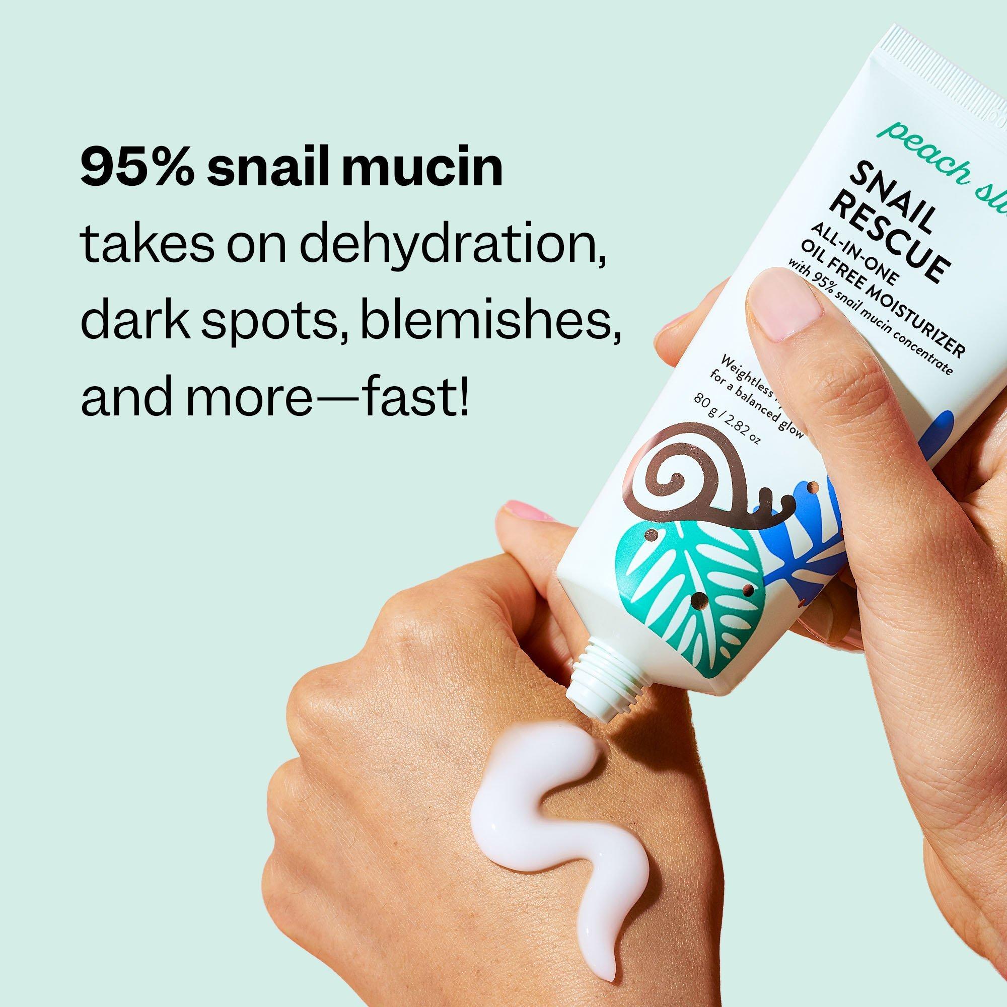 Peach Slices Snail Rescue All-In-One Oil Free Moisturizer is your fast track to deeply hydrated, shine-free, smooth and glowing skin with 95% snail mucin.