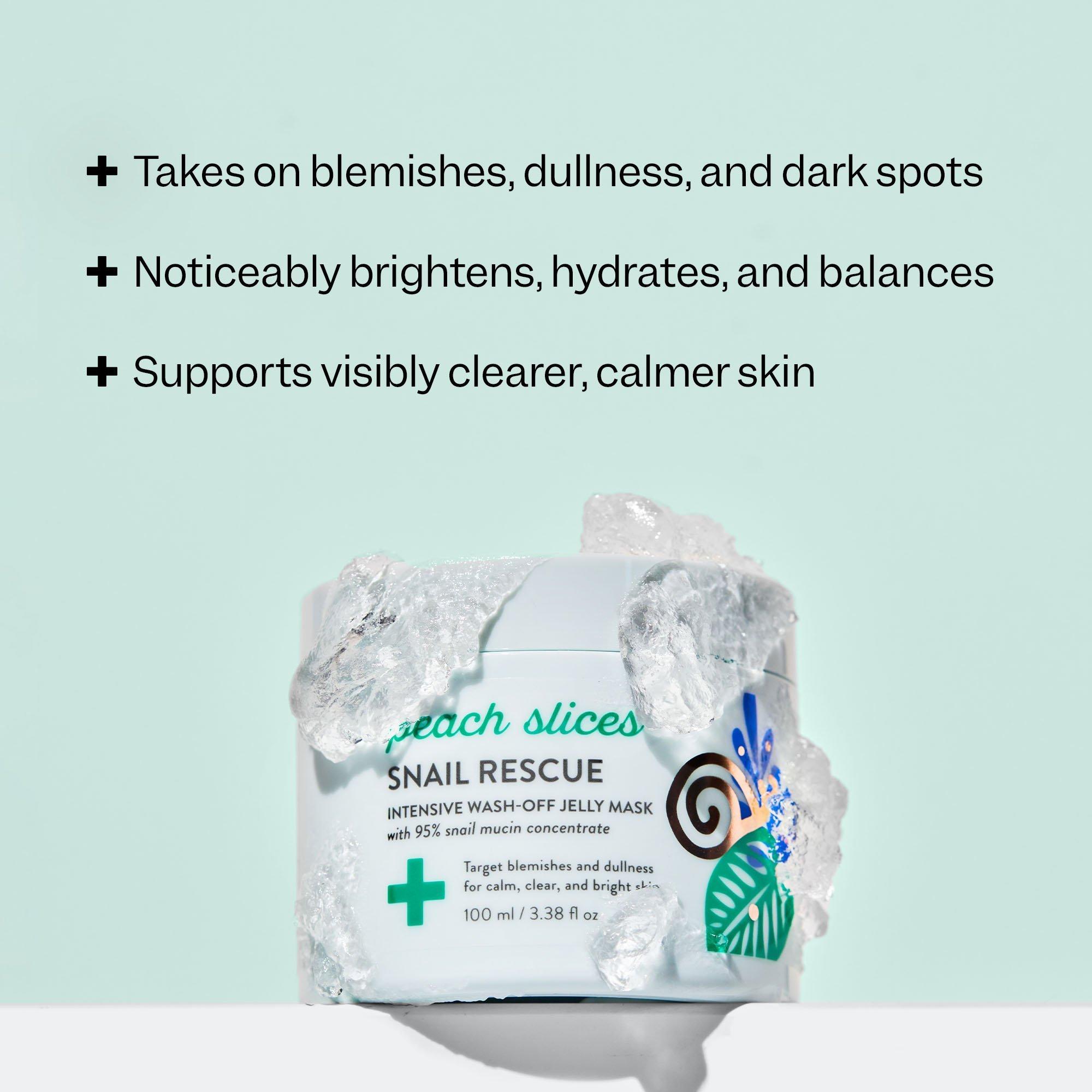 Peach Slices Snail Rescue Intensive Wash-Off Jelly Mask is your fast track to hydrated, bouncy, vibrant skin and an even glow with 95% snail mucin.
