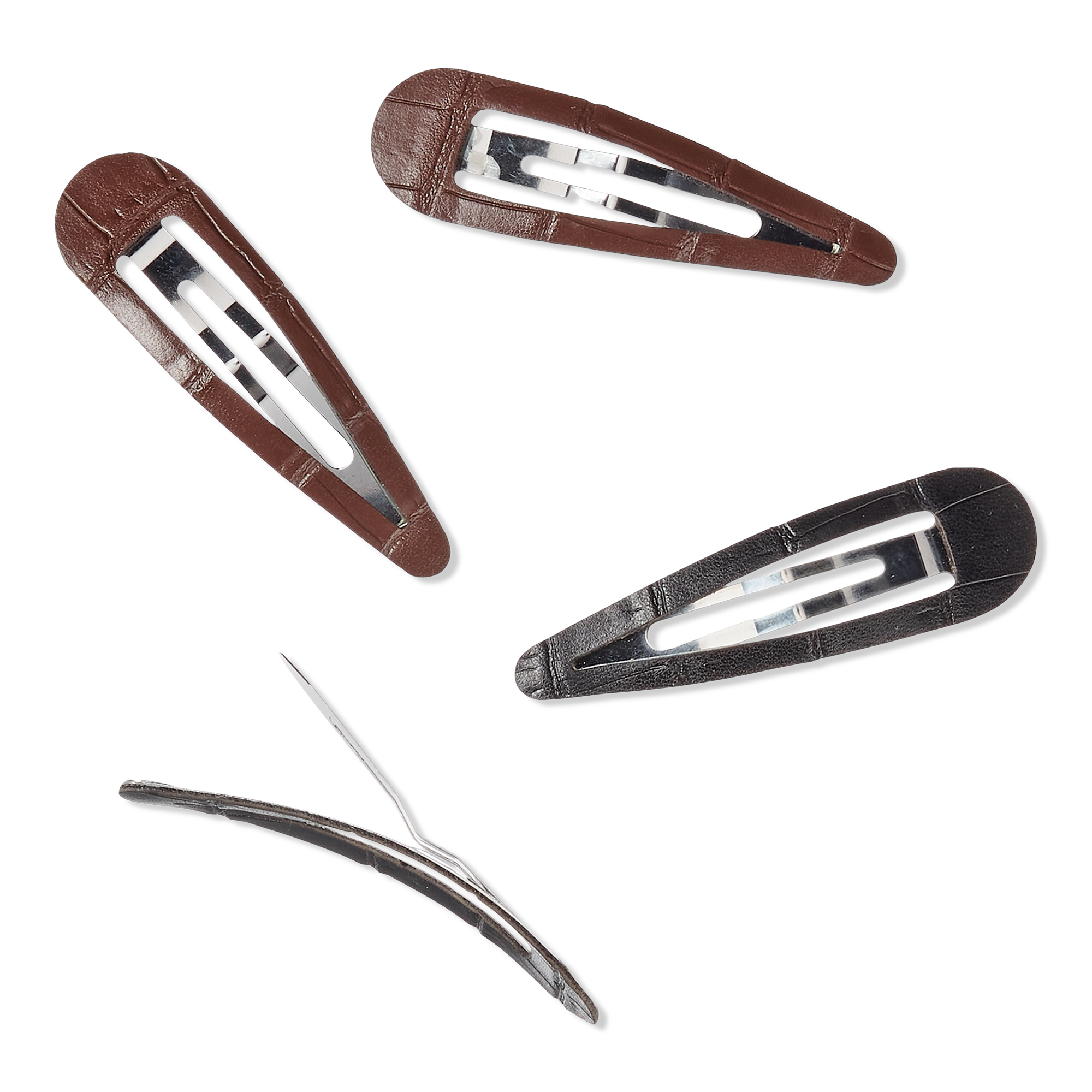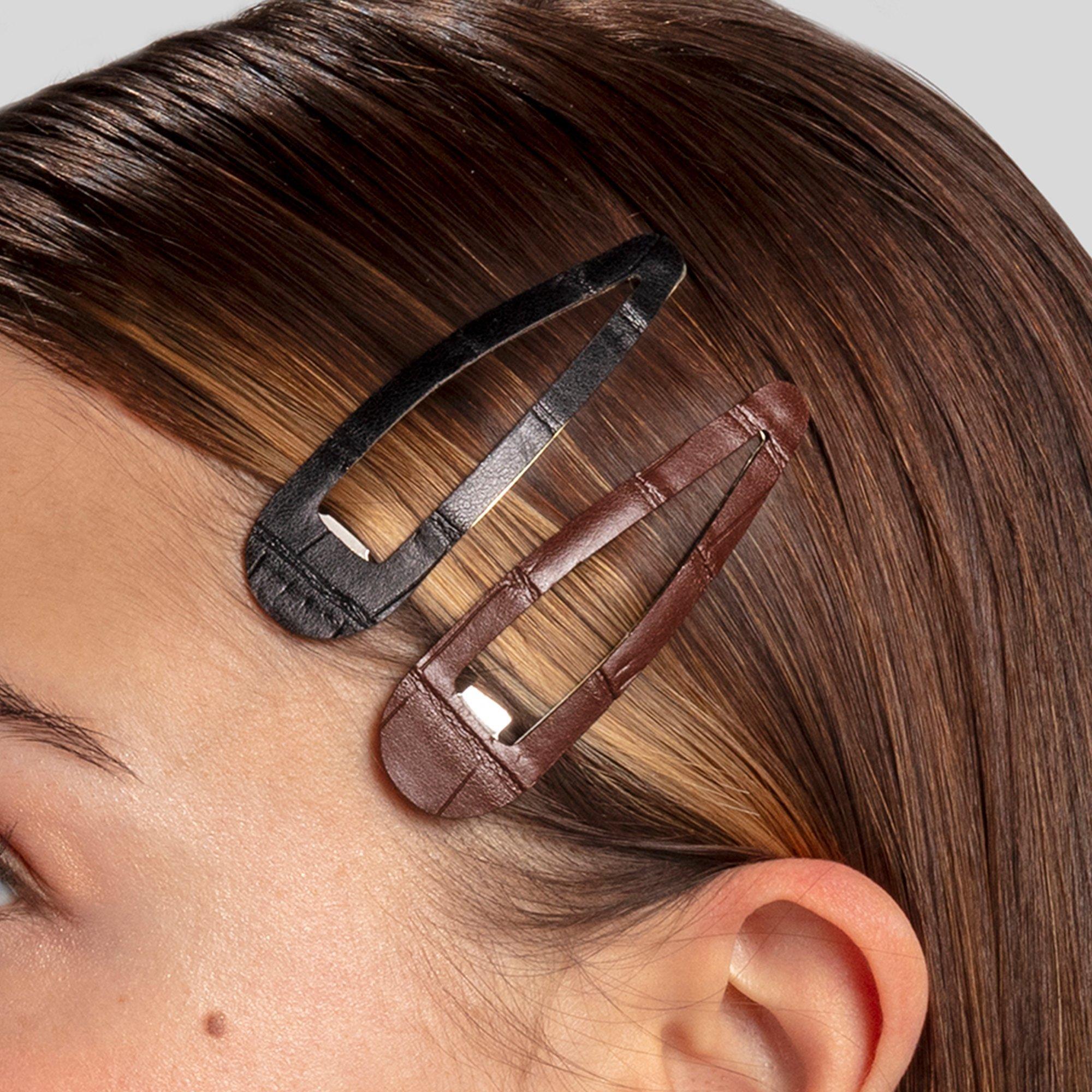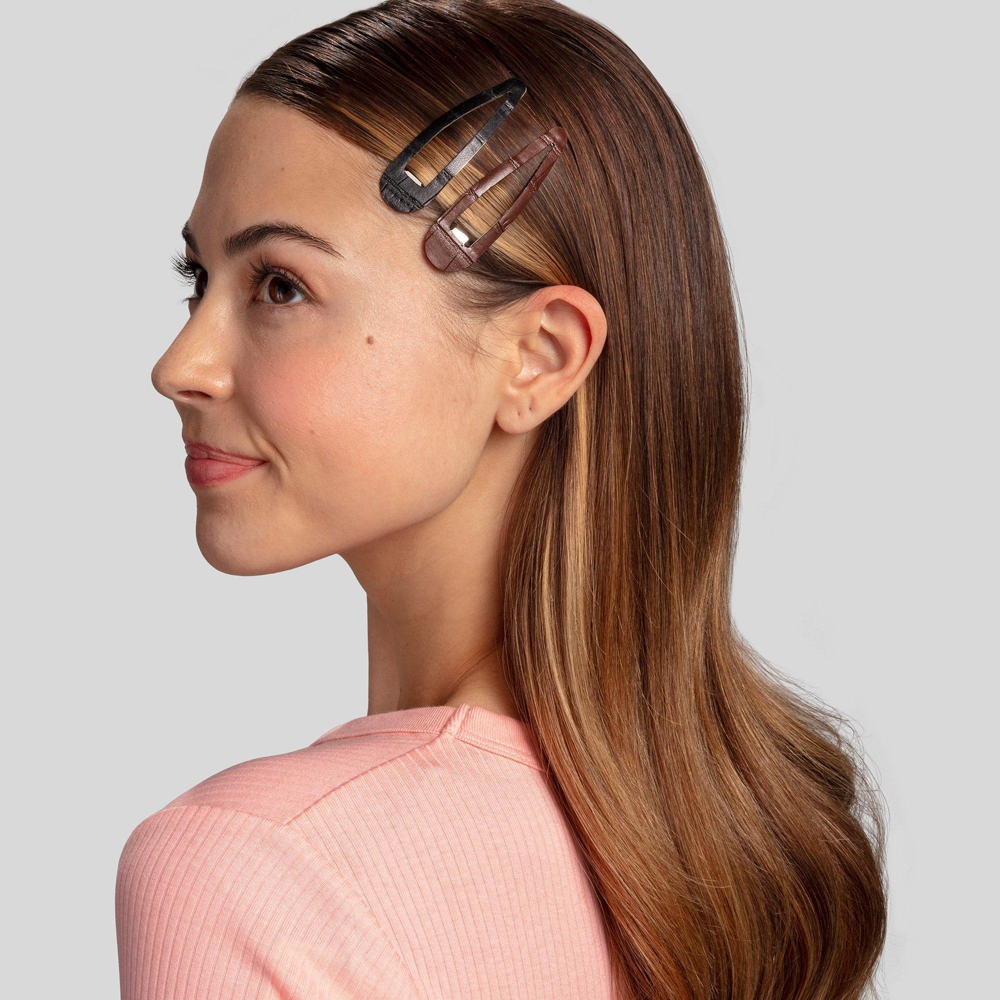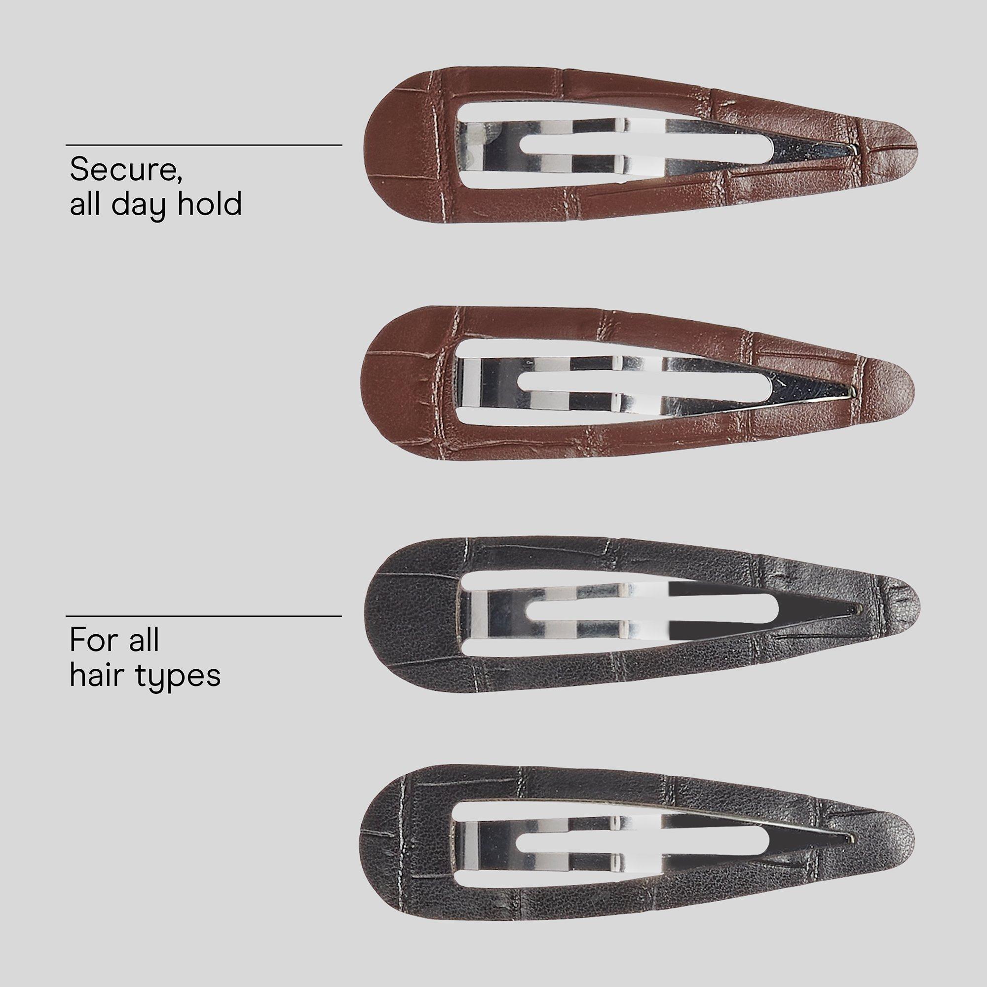 Create beautiful hairstyles in a snap with Conair snap clips. Stack and style this 4-pack of hold-tight snap clips in dark brown and black faux leather croc finishes, then mix and match for a chic look.
