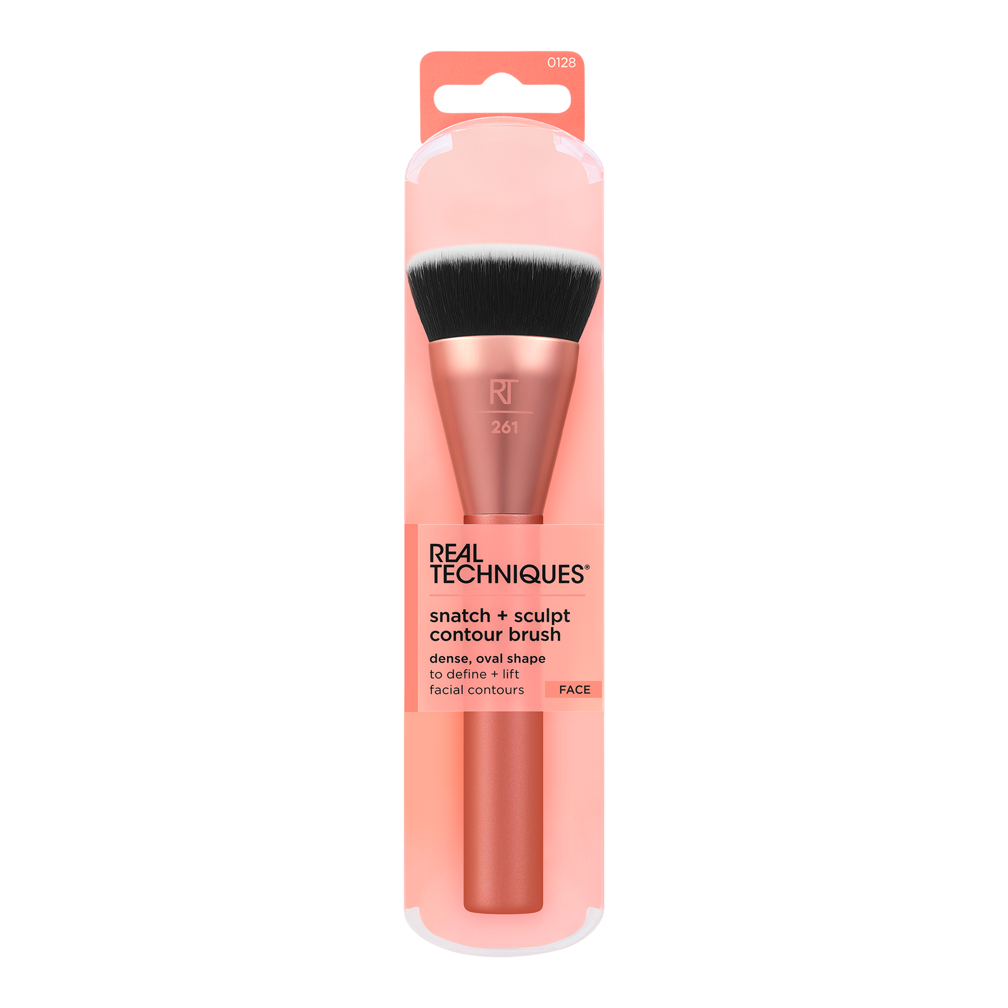 The Real Techniques Snatch + Sculpt Contour Makeup Brush features an oval head that hugs the contours of the cheekbones for a lifted definition.
