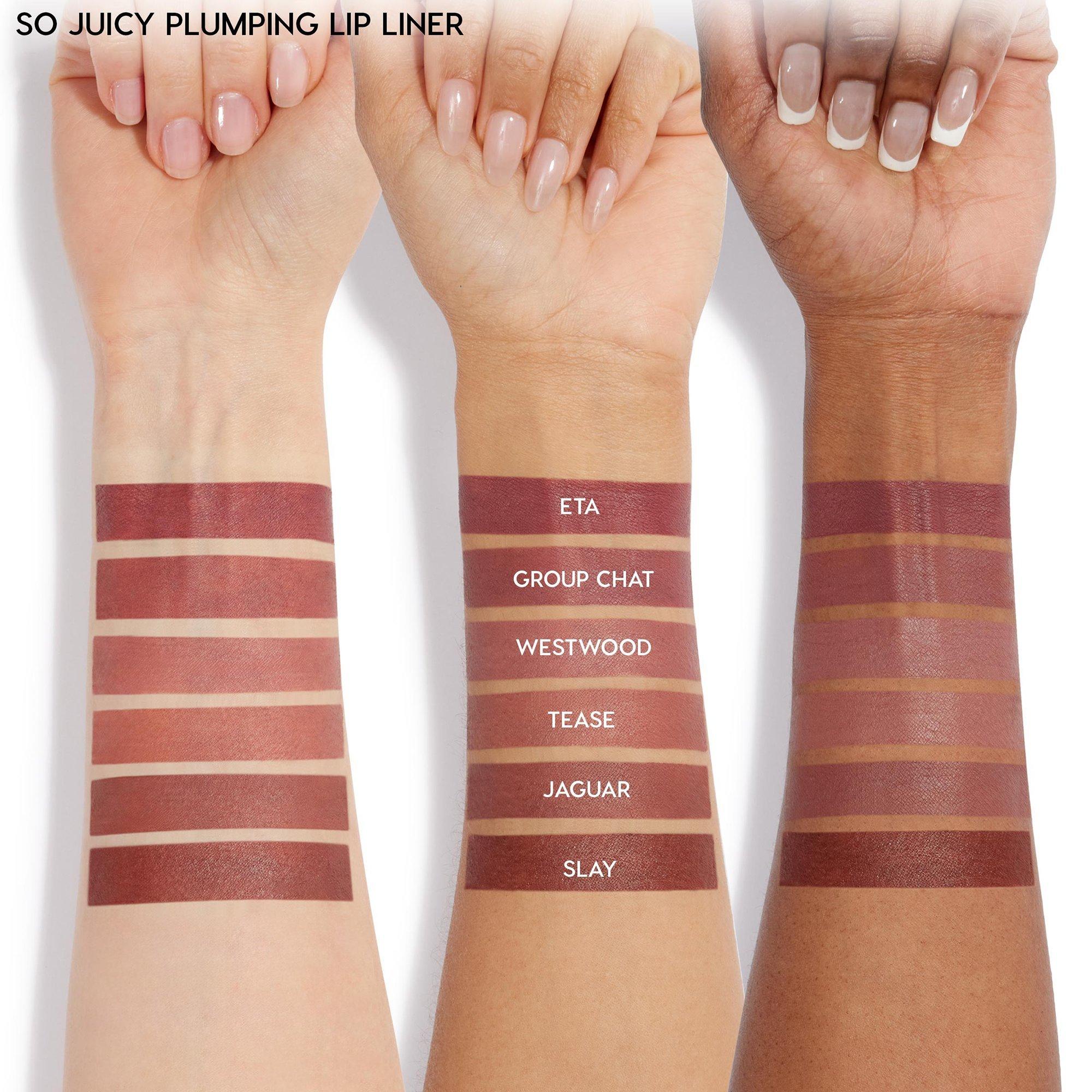 Follow your natural lip line or overline cupid's bow and bottom center lip for an extra juicy look. A cool tingling sensation after application is normal. Wear alone or top with So Juicy Plumping Gloss Balm or So Juicy Plumping Gloss (sold separately).