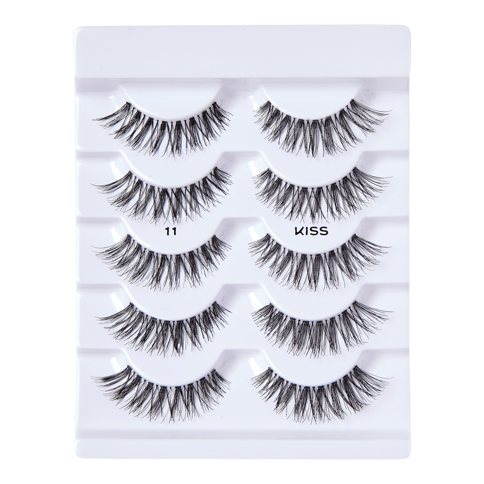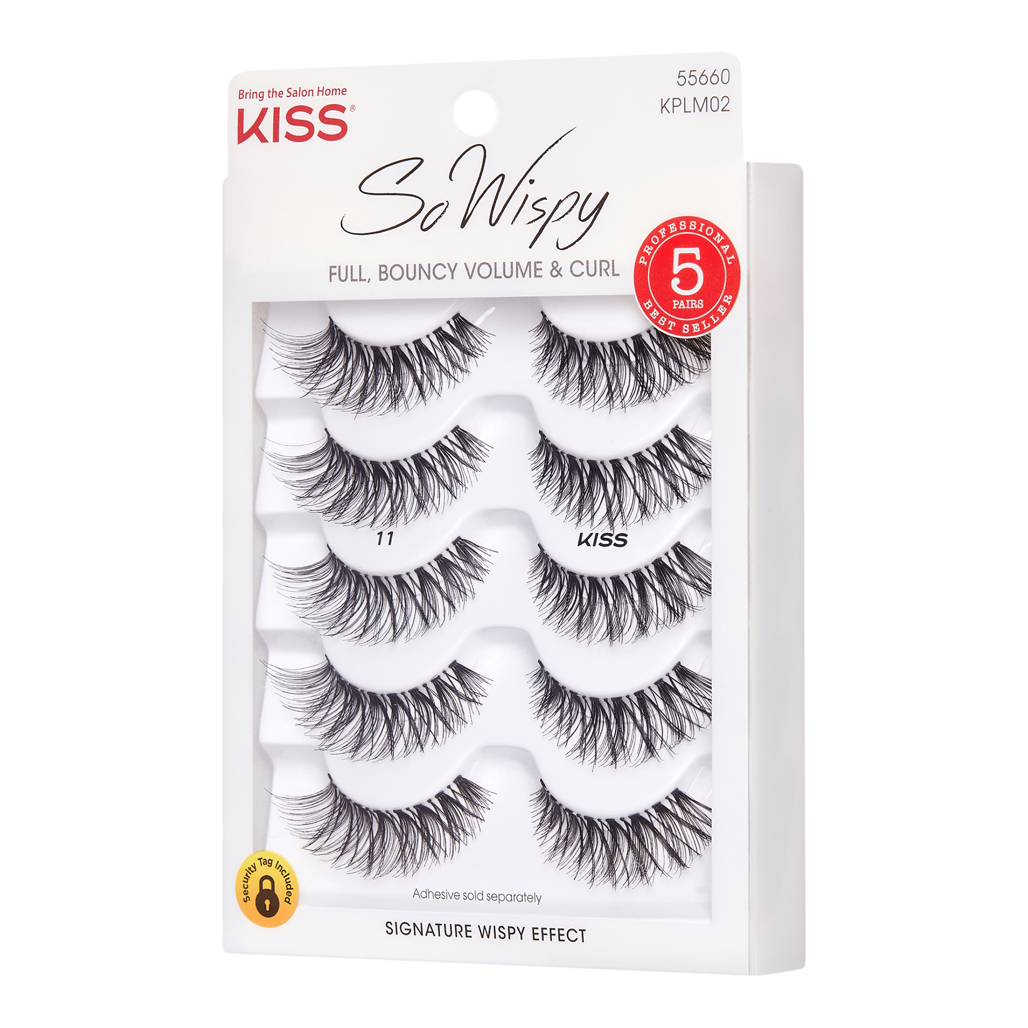 KISS So Wispy multipack #11 are Wispy, voluminous lashes with softly curled ends in a crisscross pattern, with longer lashes at the outer corners. So Wispy styles are easy to apply with KISS lash adhesive or KISS GLUEliner.