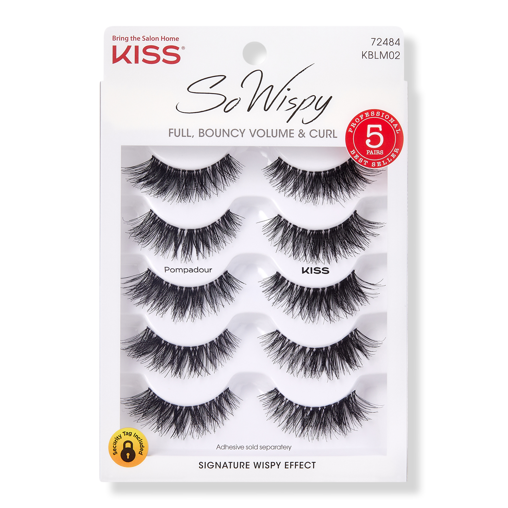 The Next-Gen Wispy has arrived with KISS So Wispy Lash Multipack, Pompadour! Volumizing Back-Tease Technology utilizes a salon styling technique that ups hair volume to create the most body-full, natural looking lashes ever. Unique crisscross pattern blends seamlessly with your natural lashes.