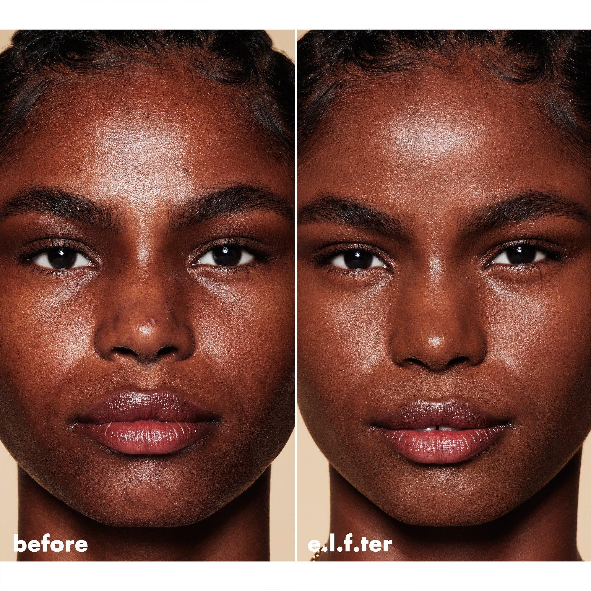 Using your fave e.l.f. Foundation Brush or the Total Face Sponge (sold separately), buff and blend foundation all over face and onto the upper neck.