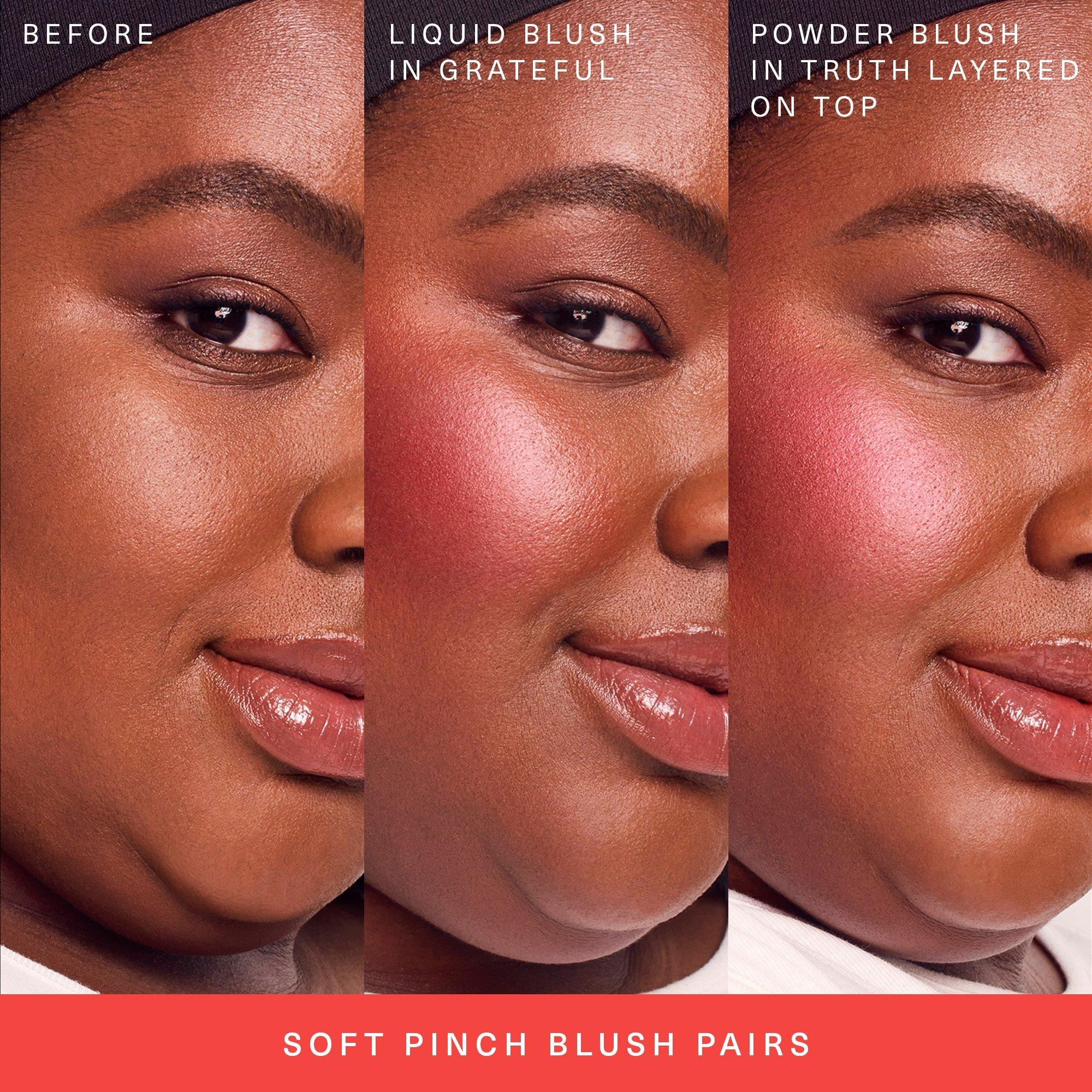 Tip: For an even more intense flush, layer over apply Soft Pinch Liquid Blush.
