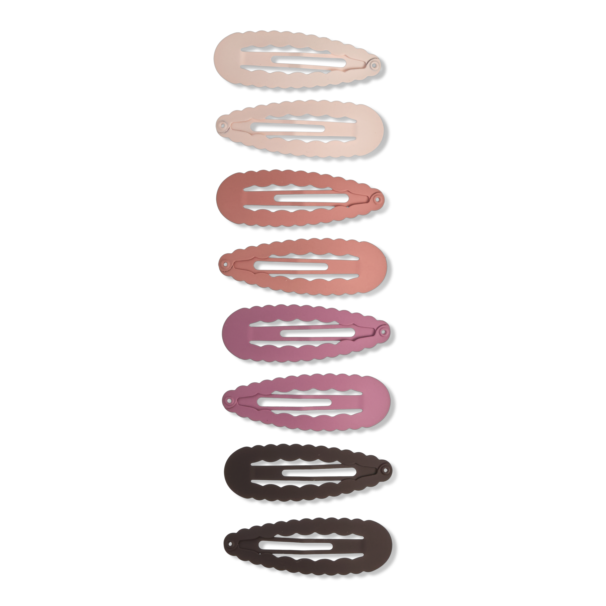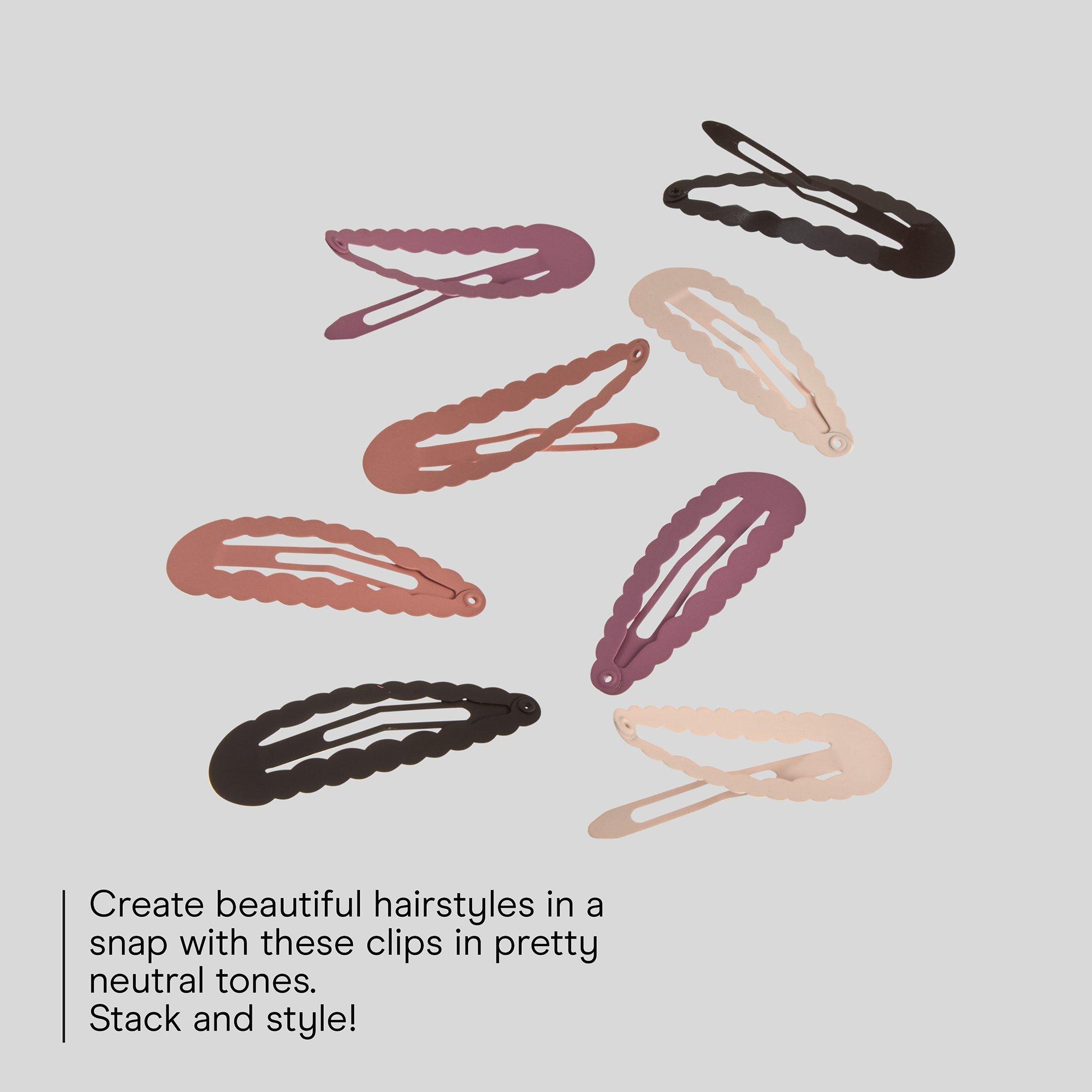 Cute, grippy, and effortlessly stylish. Eight Conair Soft-Touch Wavy Snap Clips add a matte pop of pink and brown shades while holding hair securely. Smooth, modern, and made for easy everyday styling.