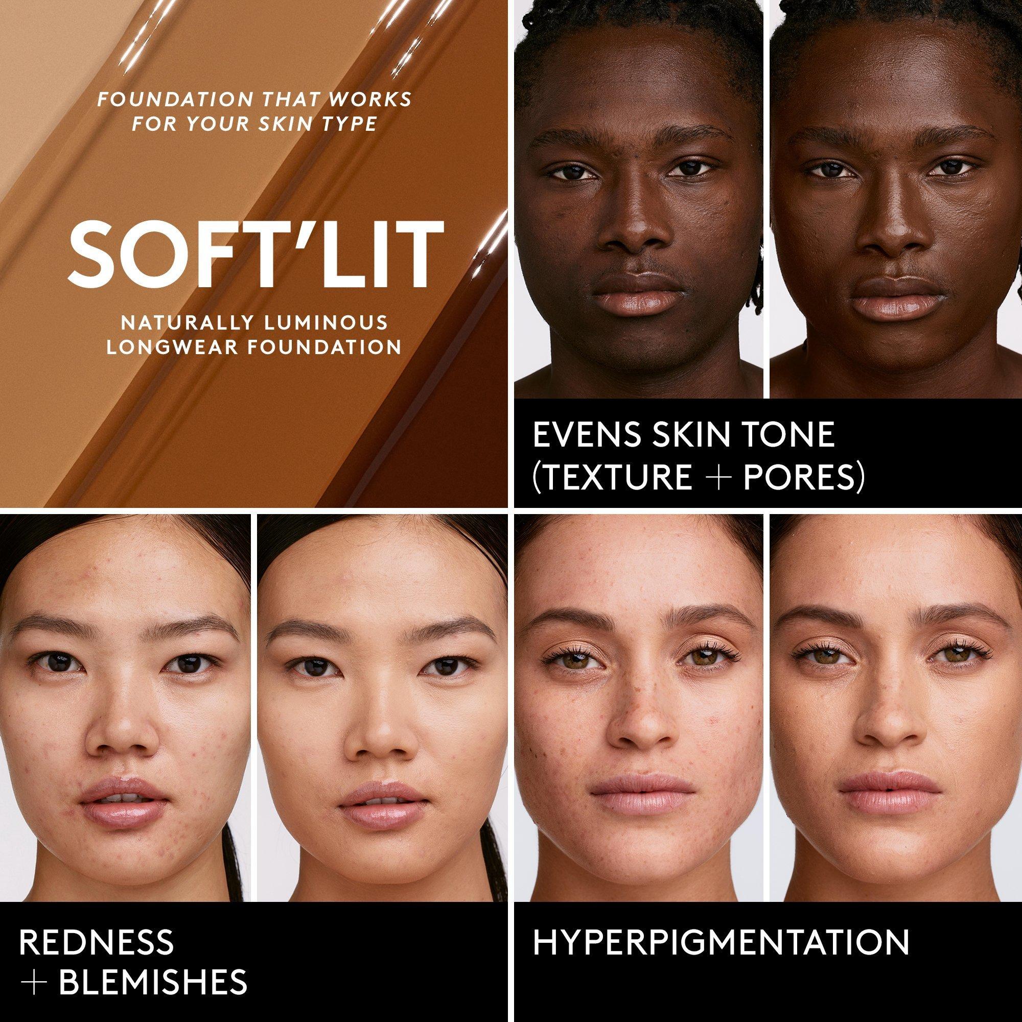 For full coverage: Apply 1- 2 pumps of Soft'Lit Foundation directly on the Foundation Brush 145 and blend. Add more to build your desired coverage.