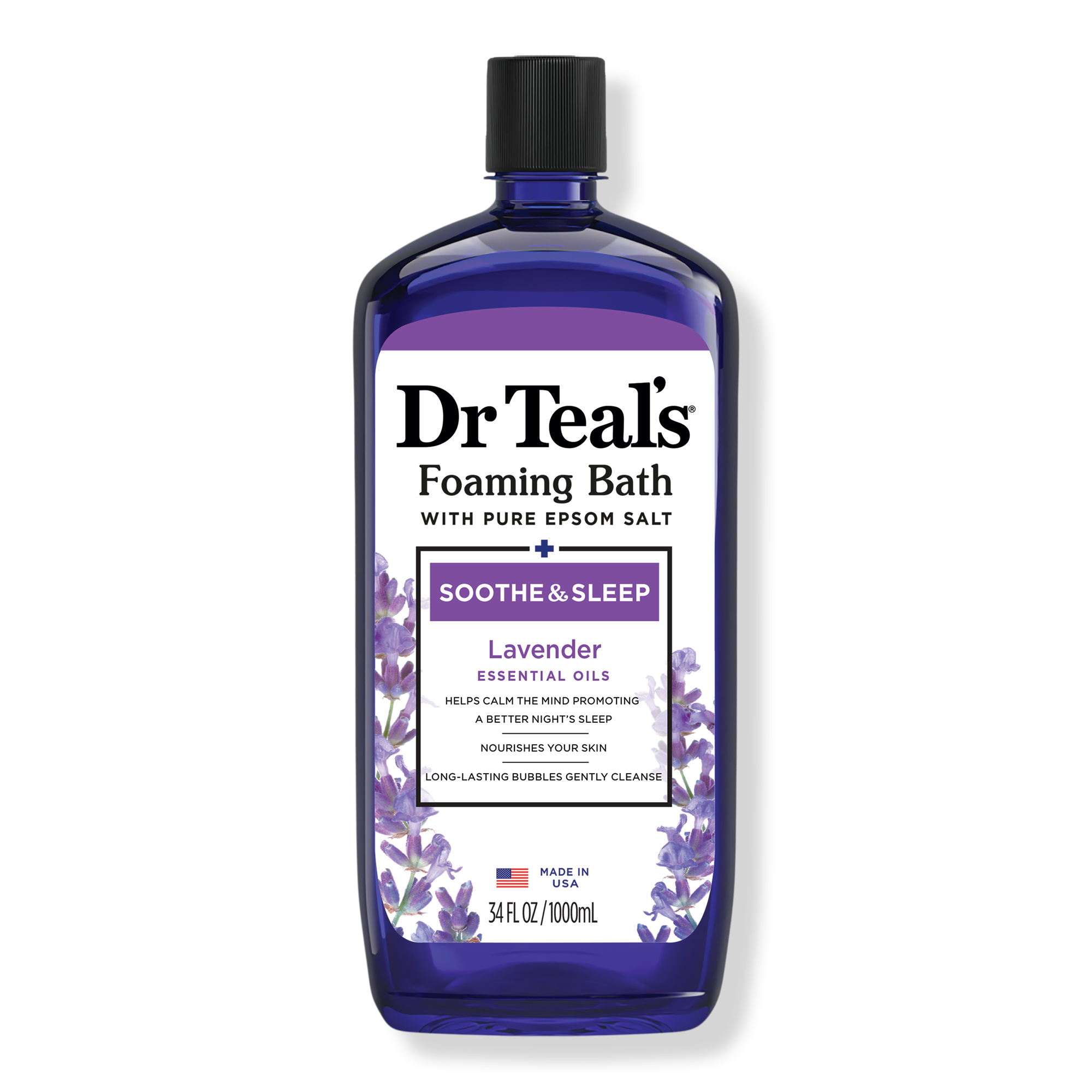 Calm is within your reach with Dr Teal’s Soothe & Sleep Foaming Bath with Lavender & Pure Epsom Salt. Sink into a lavender bubble bath that’s ideal for cleansing, moisturizing, and rejuvenating your skin and muscles. Make any day into a day of relaxation with a single bath rich with essential oils.