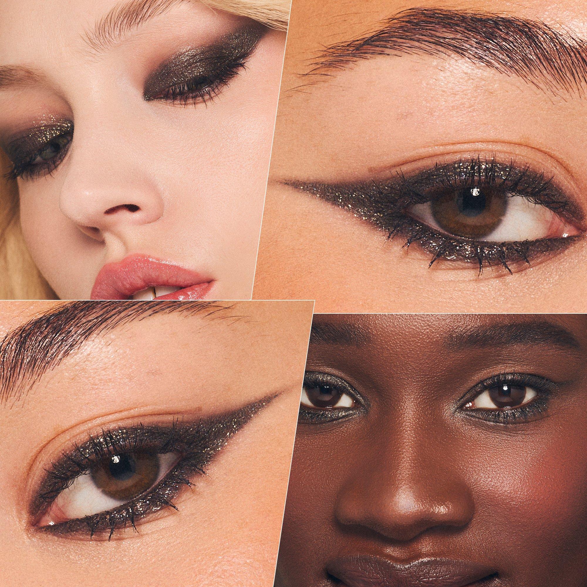 Swipe color directly onto the eyelid. Blend with finger or brush for a soft wash of color and sparkle or build for intensity.