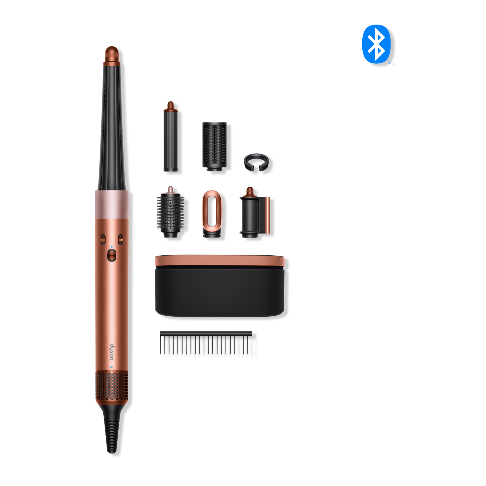 • Bluetooth® wireless technology enabled to create a personalized curling routine according to your hair profile in the MyDysonTM app.