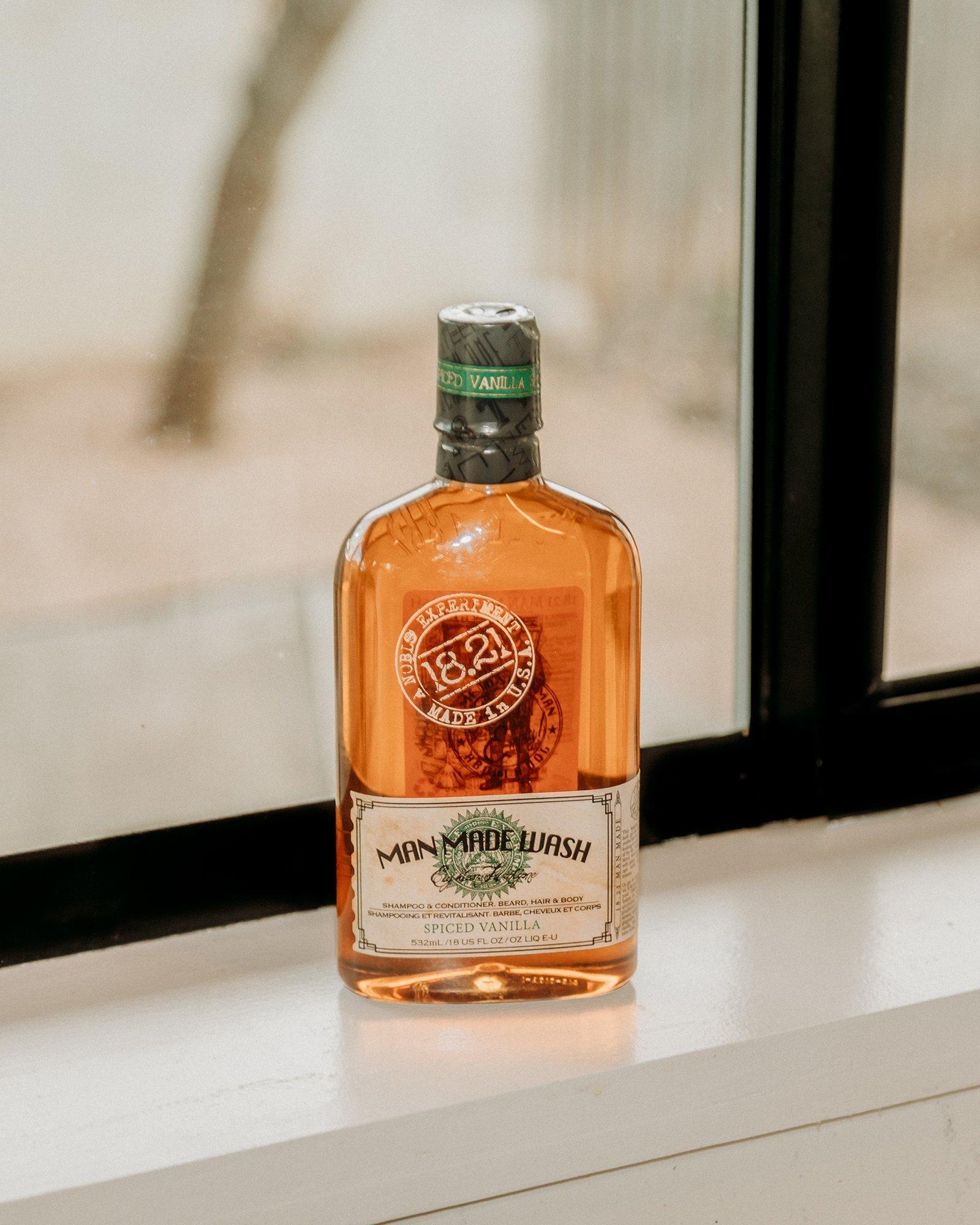 18.21 Man Made Spiced Vanilla Shampoo, Conditioner and Body Wash offers a moisturizing lather that cleanses, conditions and strengthens hair, beard, and body alike.