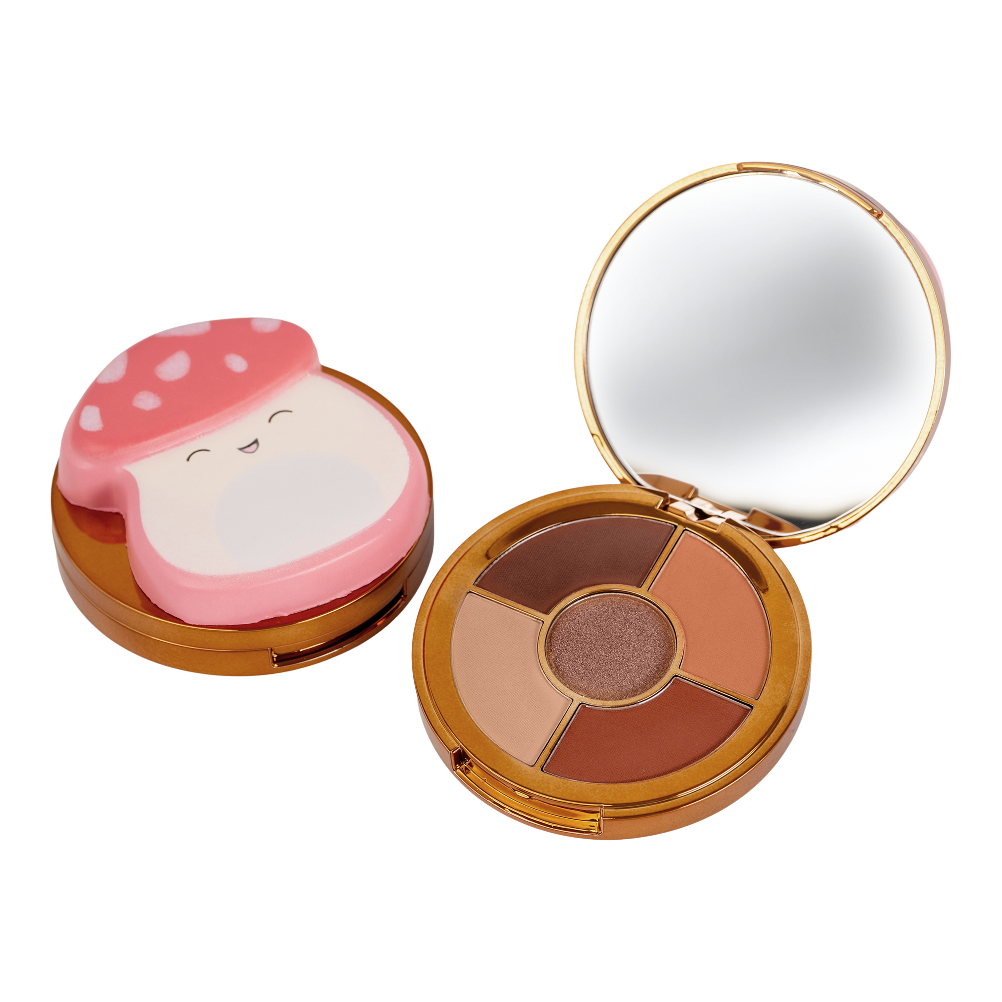 Squishmallows Squishy Eyeshadow Palettes feature 5 powder eyeshadow colors in unique color combinations that include shimmer, matte and metallic finishes. Mix and match your favorite shades to create unique looks for anything from a day in the park to a night on the town.
