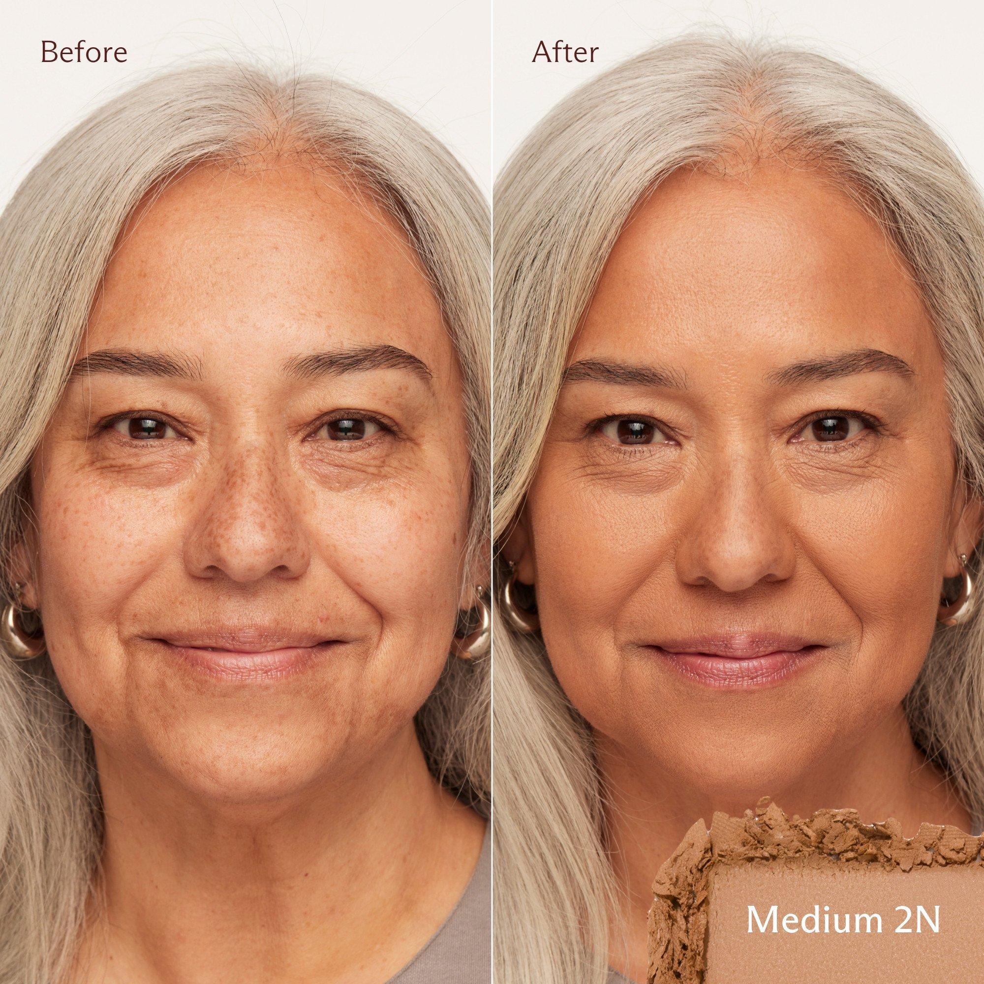 Sweep powder across skin to even skin tone, reduce redness, and conceal imperfections. Layer in areas you want more coverage.