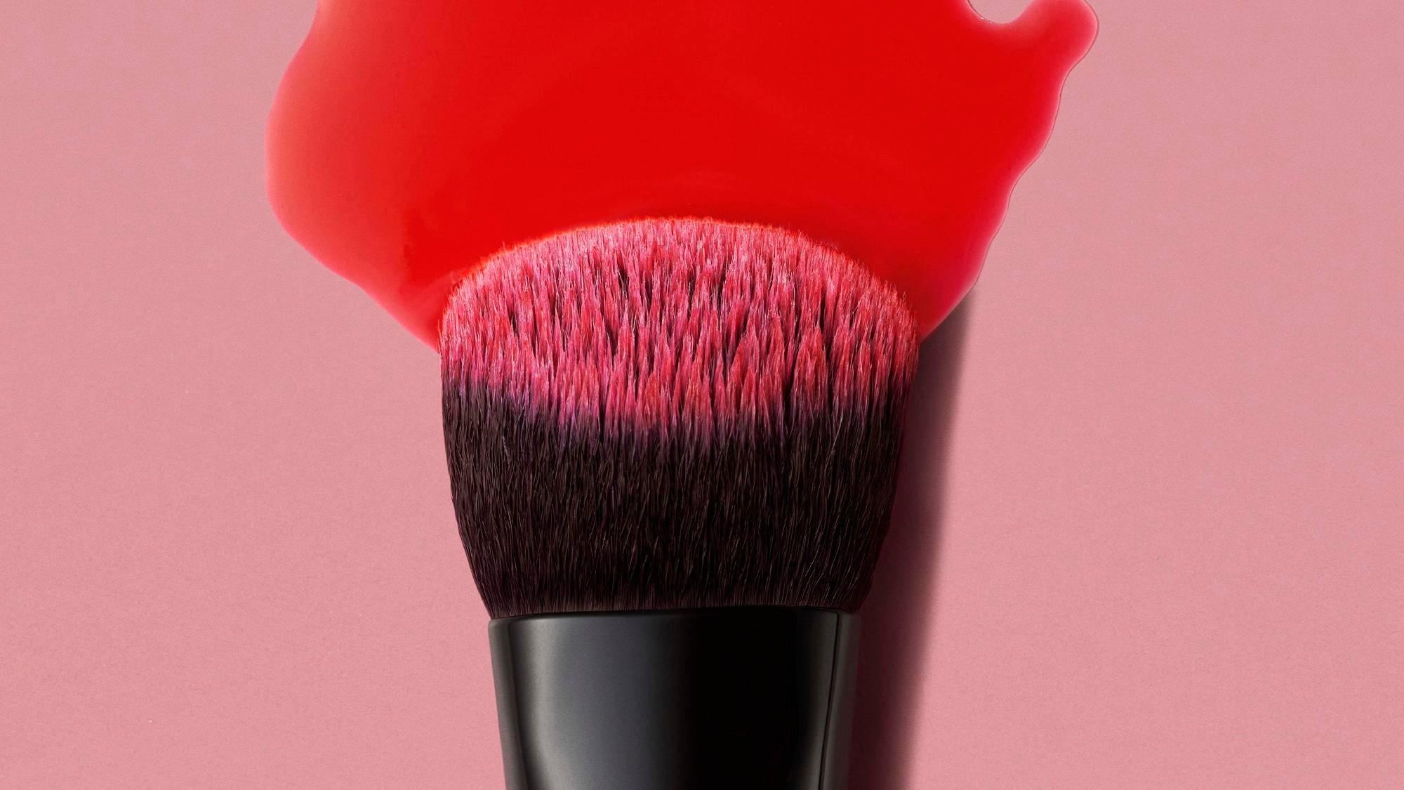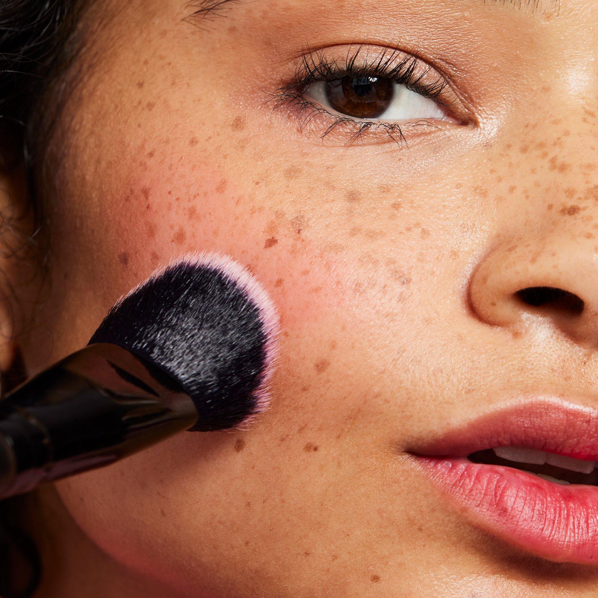 Use the angled brush head to dab and blend cheek tints immediately after applying.