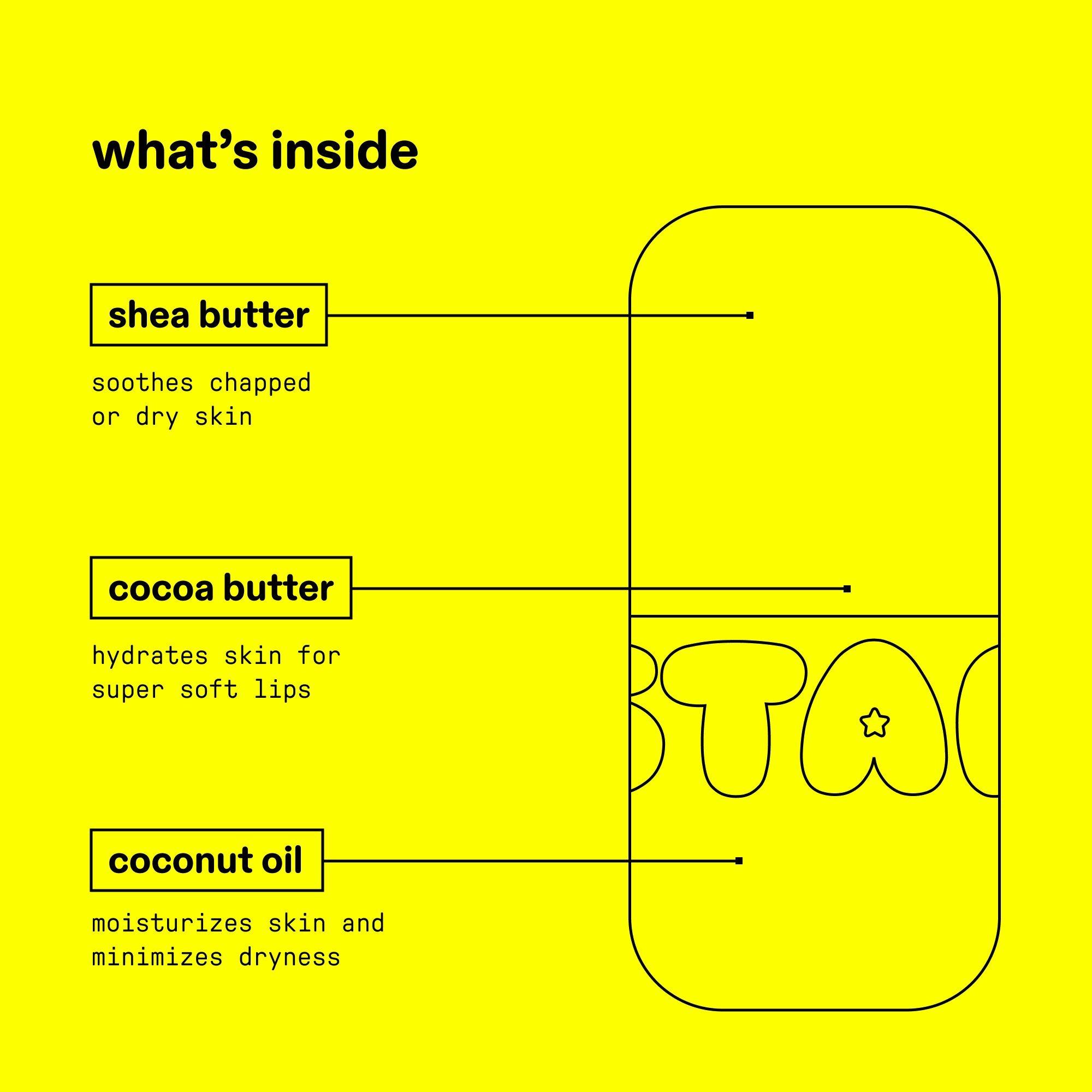 Starface Star Balm Lip Balm is an ultra-cushiony, ultra-cute lip balm that delivers long-lasting hydration with a powerful combination of shea butter, cocoa butter, and coconut oil. It's like a hug for your lips, anytime you need.