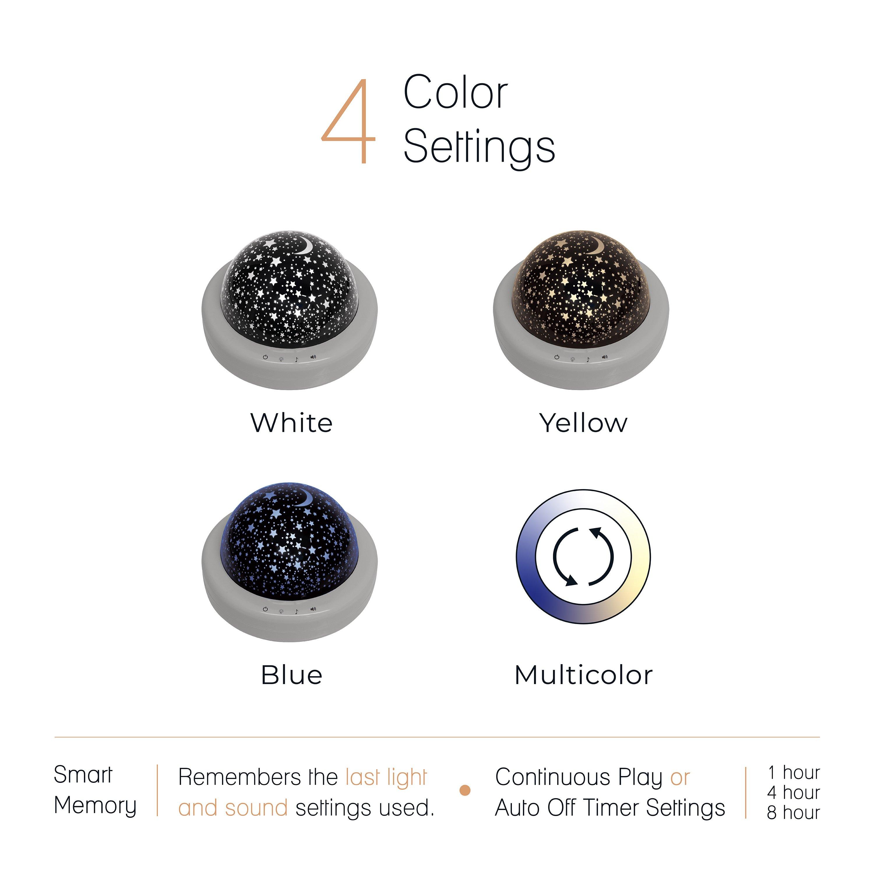 Transform your bedroom into a serene oasis with a Starlight Projector. Enjoy 15 soothing sounds and four LED colors. The intuitive touch panel and smart memory function make relaxation easy. Requires USB cable (included) or 3 AA batteries (not included).